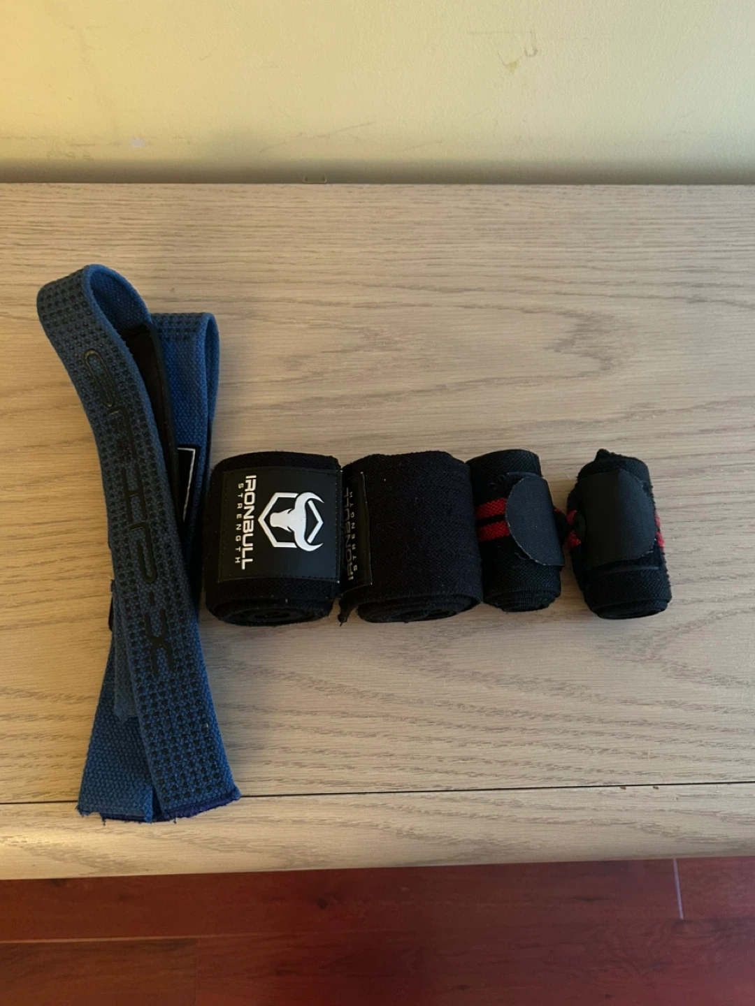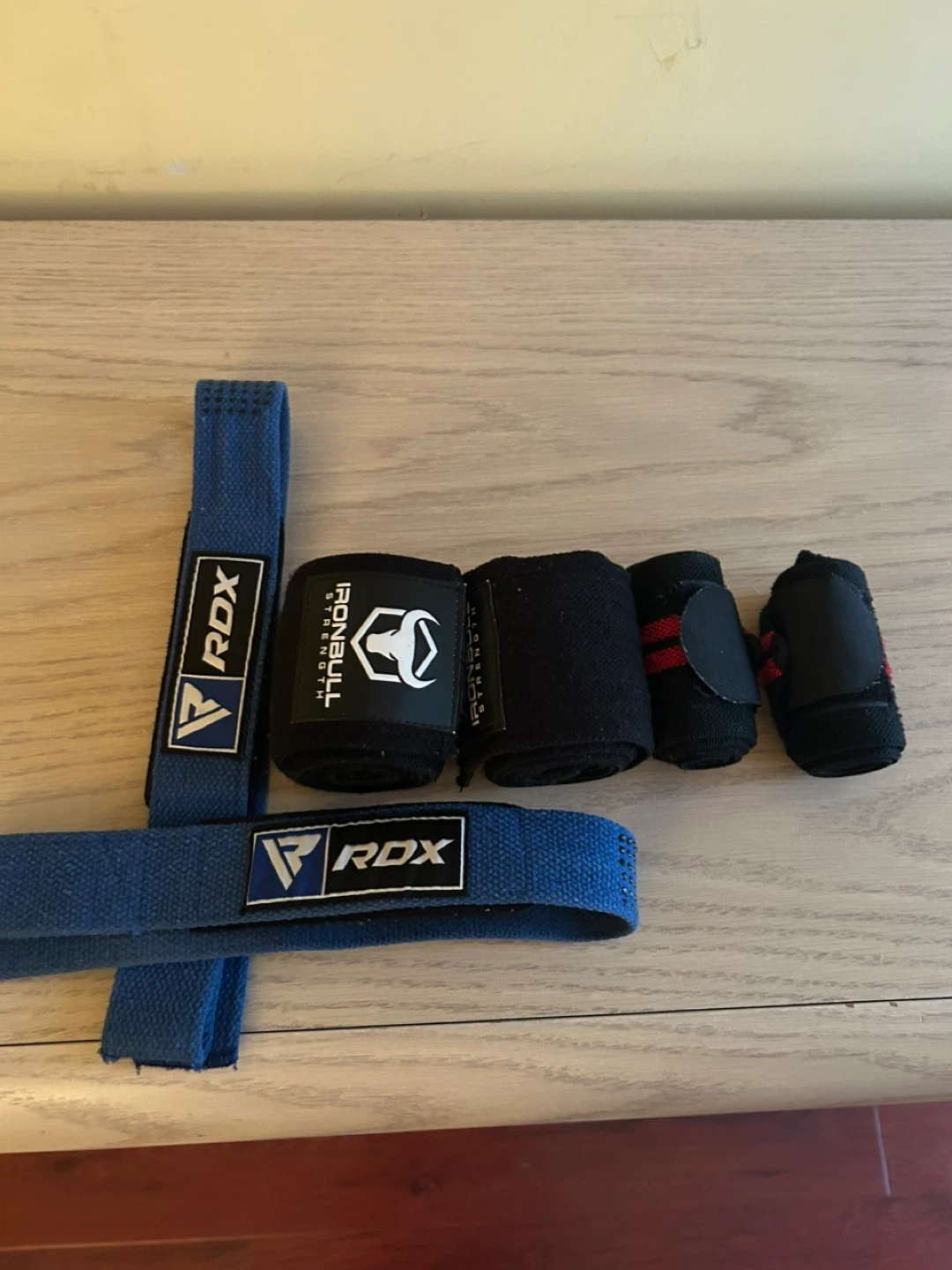 74Selling a set of weightlifting wraps, including RDX elbow wraps and Iron Bull lifting wraps and IPOW wrist wraps. They're in great shape and ready to help you crush your next workout! Get the entire bundle for 30 buckaroos.