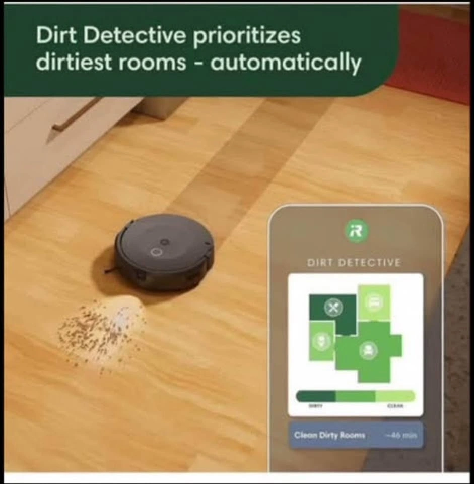 PREDICTS DIRT. ELIMINATES IT. Some rooms you live in, others you don’t—and Dirt Detective knows exactly which rooms get dirty fastest. It prioritizes where to clean and automatically selects the right settings to give them the deep cleaning they need.