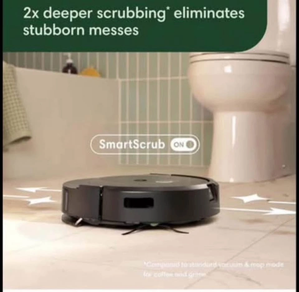 SMART SCRUB MOPS BACK AND FORTH WITH CONSISTENT PRESSURE AND 2X DEEPER SCRUBBING*. Some areas of the home need a deeper clean–pawprints in the mudroom, spills under the kitchen table, tiles in your bathroom. Simply enable SmartScrub and your Roomba Combo 10 Max will scrub back-and-forth, just like you would. *Compared to standard vacuum and mop mode for coffee and grime.