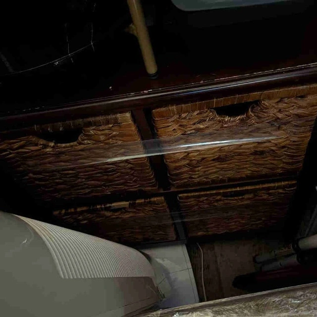 4-cube storage unit with wicker baskets. Great for organizing clothes, craft supplies, or household items. Includes 4 woven baskets. Some damage to one of the baskets. Pickup in Welland. $25 OBO