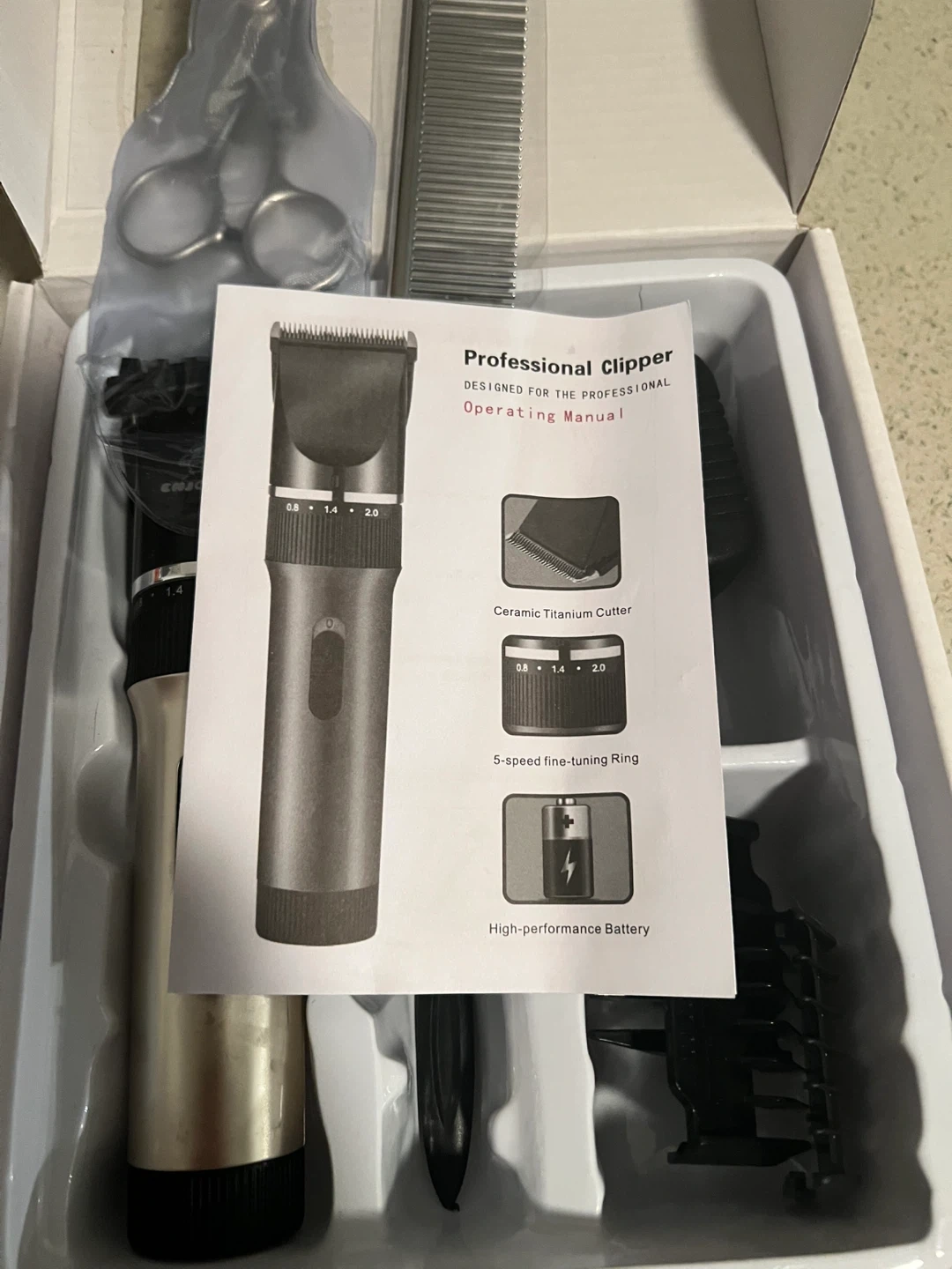 It's a professional grooming tool with an ultra-high capacity battery, powerful motors that won't get clogged, and a sharp ceramic blade for ultra-quiet operation.
