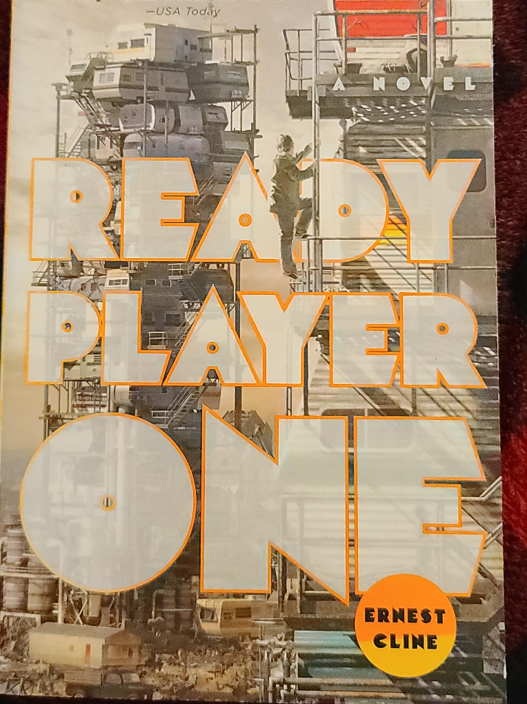Selling a copy of Ready Player One by Ernest Cline. It's a novel that takes place in the year 2044. It is about a young man named Wade Watts who feels really alive when he's jacked into the virtual utopia known as the OASIS. The story is about Wade's devotion to studying the puzzles hidden within the world's digital confetti.