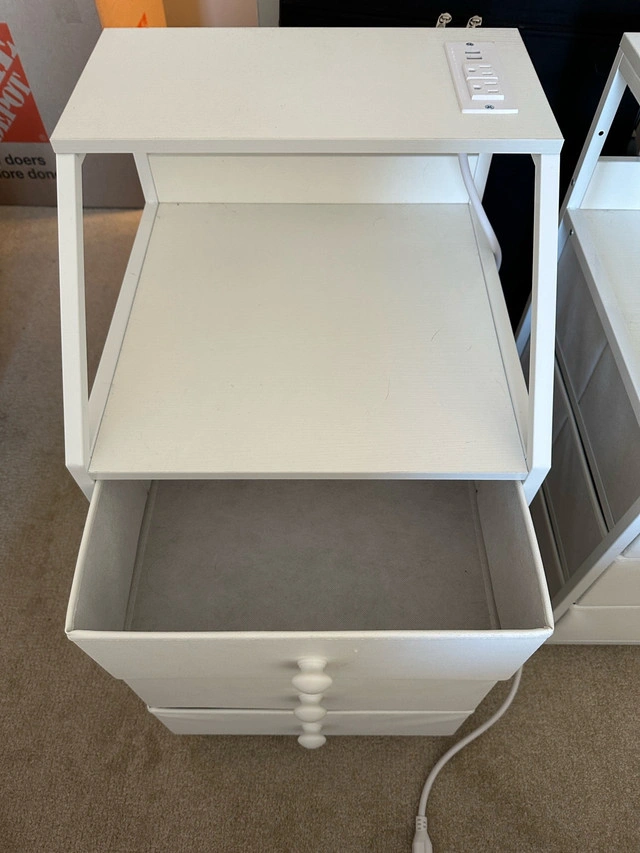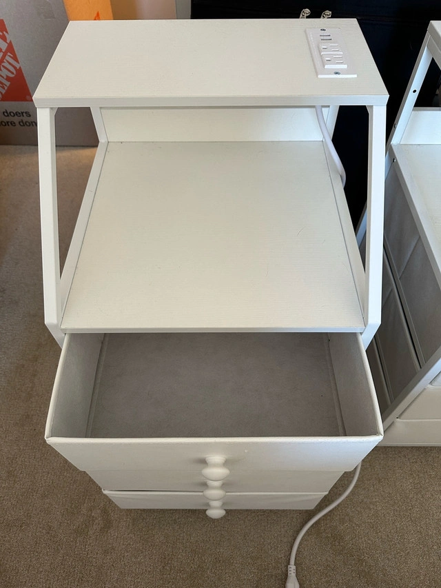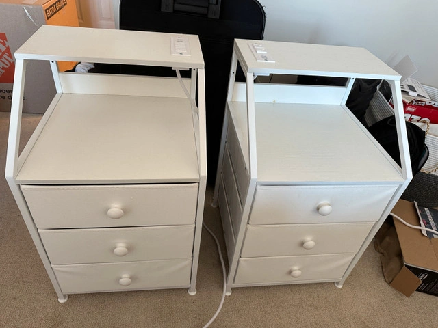 REAHOME Nightstand Set of 2, white Night Stands with Charging Station, Bedside Tables with 3 Fabric Drawers and 2-Tie Storage Shelves, Modern Side Table for Bedroom-White $50 for 1 piece or $90 for both For Sale By: Owner