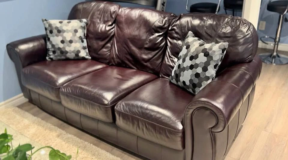 10Beautiful genuine leather couch in a rich dark brown color. Made with 100% real leather, not faux or bonded. Soft, comfortable cushions with great support. No tears, rips, or stains – gently used. Comes from a pet-free, smoke-free home. Easy to clean and maintain. Pick up only at rosebank and Sheppard