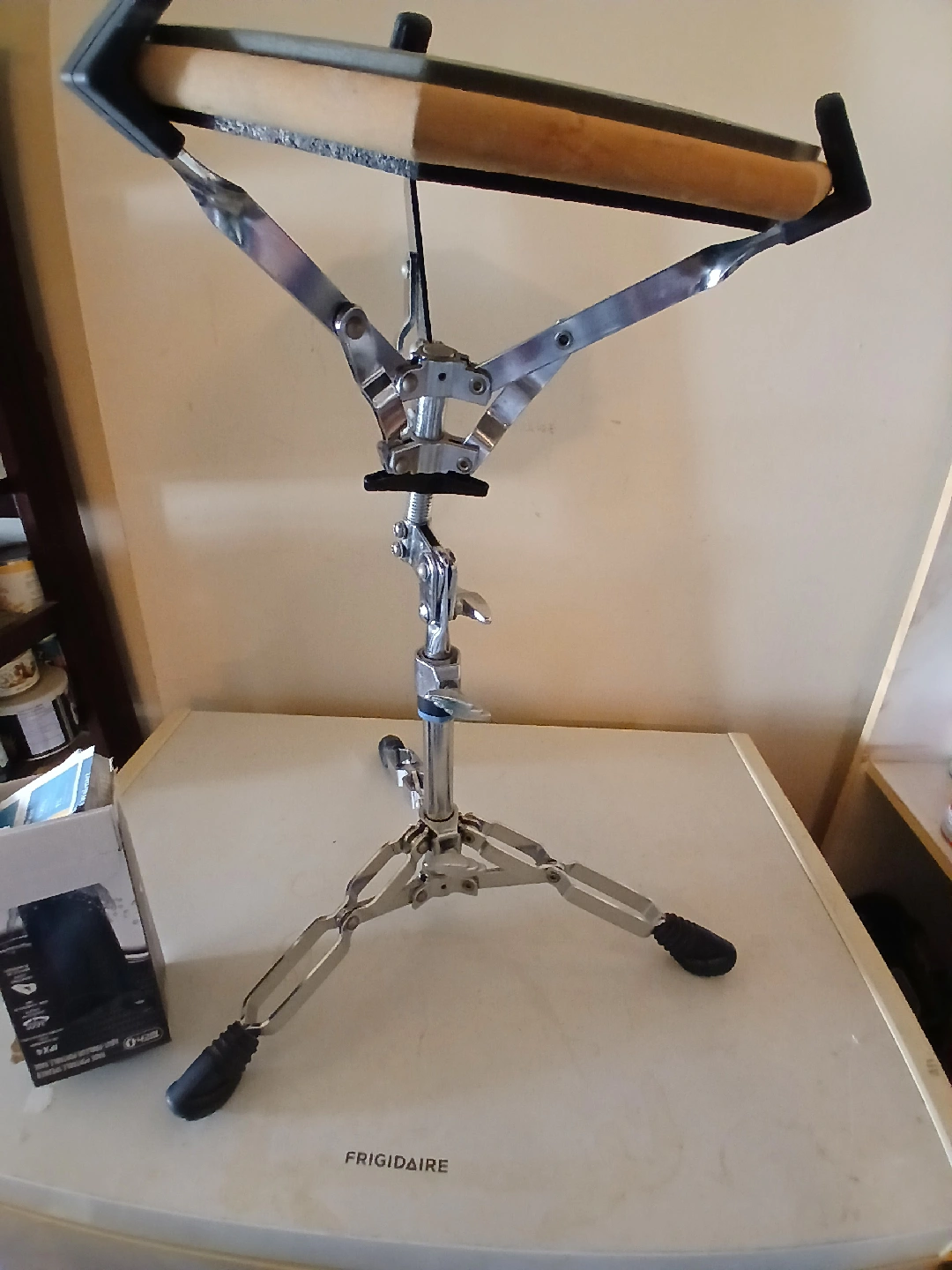 Selling a RealFeel practice pad, complete with its stand. It's in great shape and ready for its next owner. Perfect for drummers looking to practice quietly at home! Sticks included!