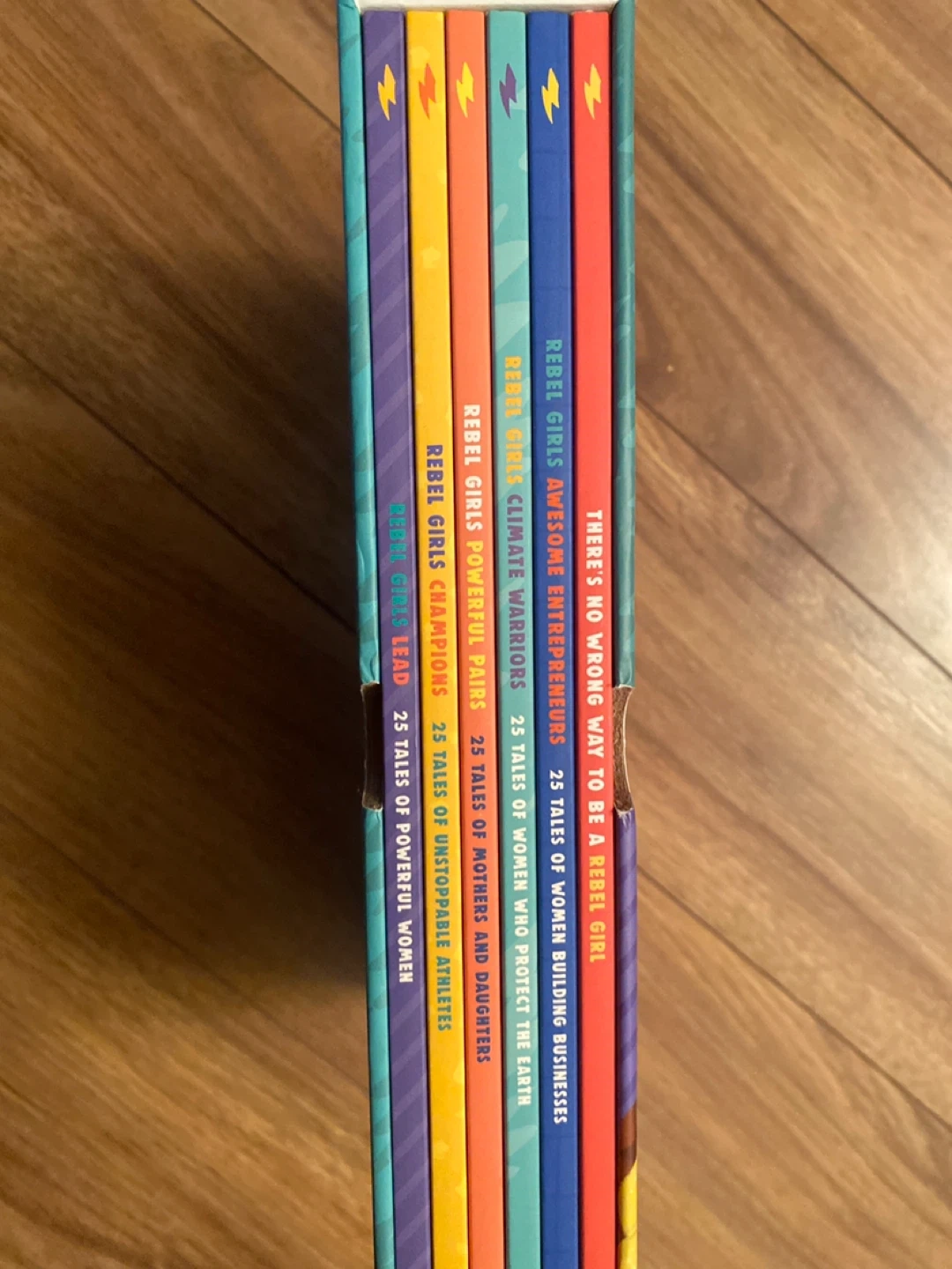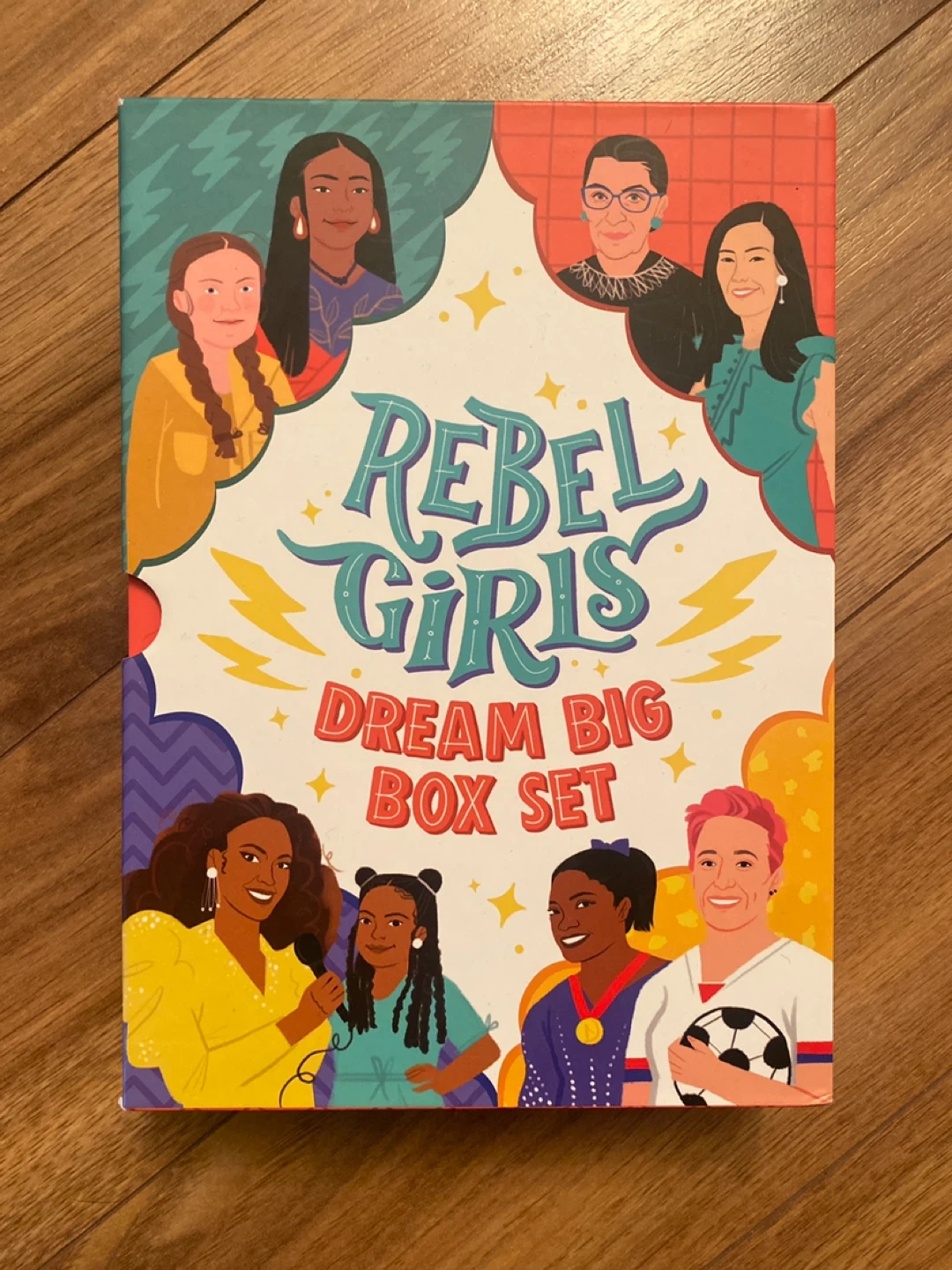 Selling a Rebel Girls Dream Big Box Set! It includes: - Rebel Girls Lead: 25 Tales of Powerful Women - Rebel Girls Champions: 25 Tales of Unstoppable Athletes - Rebel Girls Powerful Pairs: 25 Tales of Mothers and Daughters - Rebel Girls Climate Warriors: 25 Tales of Women Who Protect the Earth - Rebel Girls Awesome Entrepreneurs: 25 Tales of Women Building Businesses - There's No Wrong Way to Be a Rebel Girl: 25 Tales of Women 5 dollars each or all for 25.