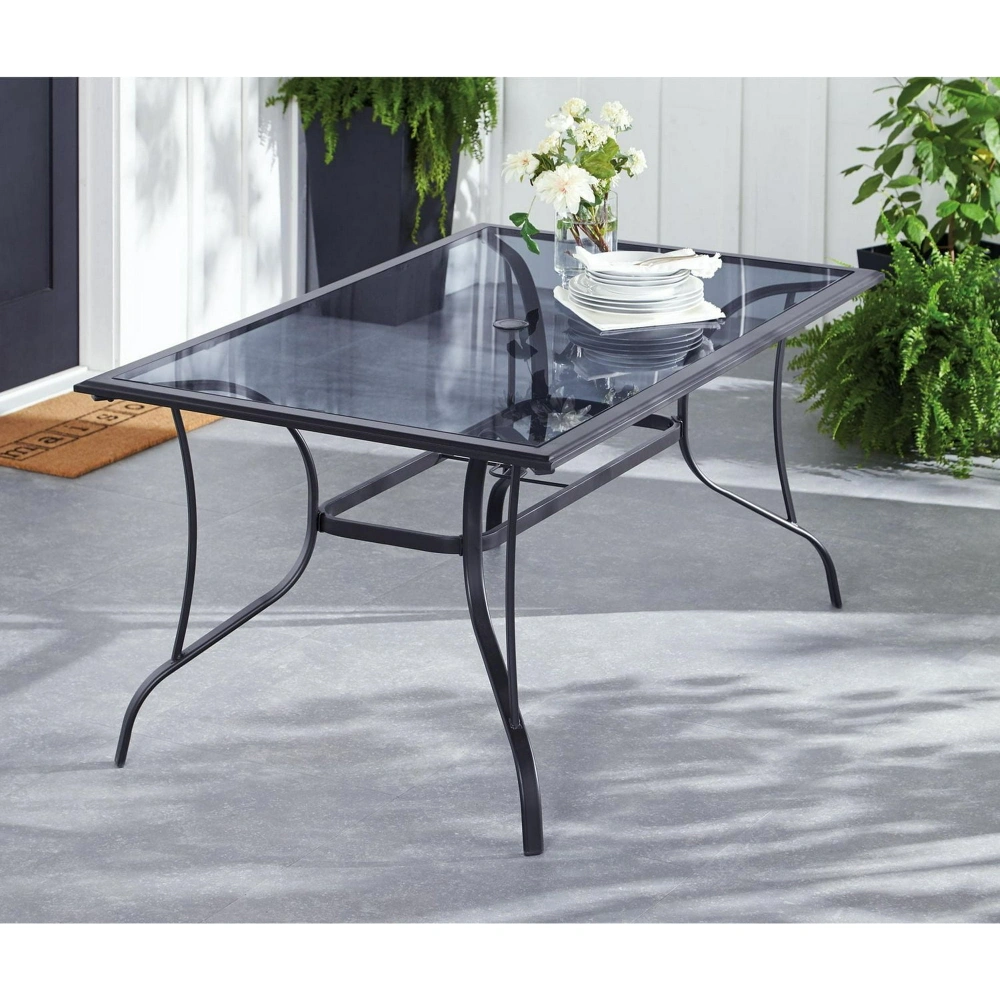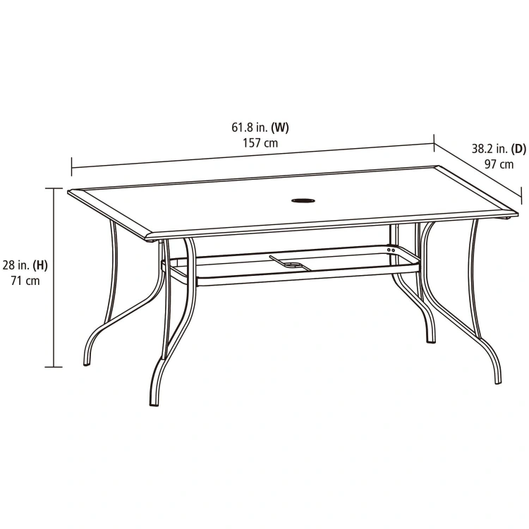 100Selling a rectangular outdoor patio table (Unopened) with a glass top. The table is black and features a sleek design. Dimensions are 61.8 inches (W) x 38.2 inches (D) x 28 inches (H). Perfect for your backyard or patio! Walmart Link: https://www.walmart.ca/en/ip/Mainstays-Charleston-Dining-Table/6000205137726