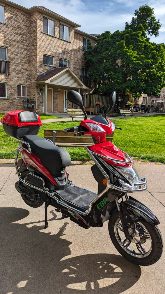 Selling a red and black EBP electric scooter. It's in great shape. Gently used for less than 1 year. Brand New batteries. Cover included Perfect for getting around town!