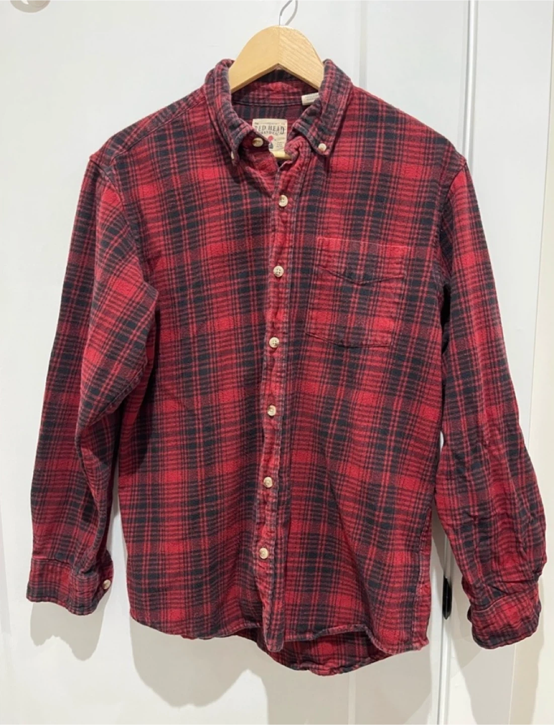 RedHead Red & Black Flannel / Plaid Shirt 100% cotton Size Medium Used - good condition Smoke Free Home π