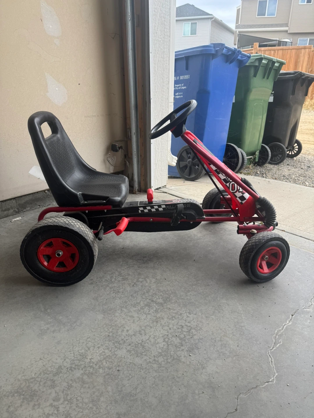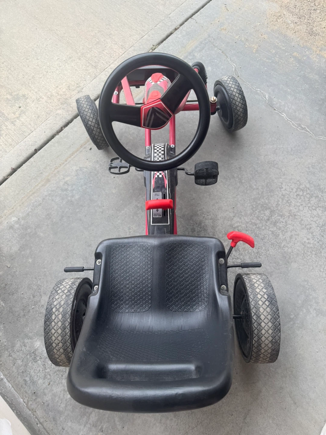 Good for little one’s 4 and up. Peddle style go-kart with steering wheel.