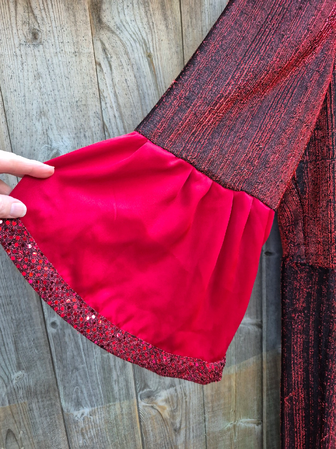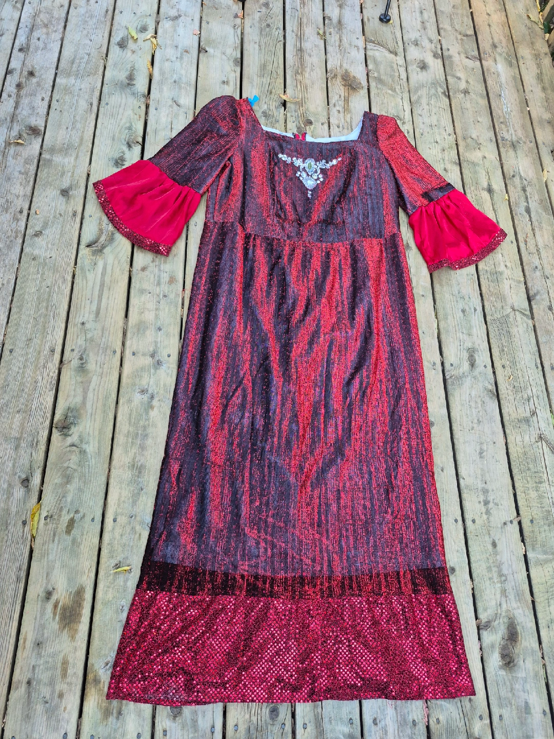 Plus size Halloween costume dress! It features red bell sleeves and a sequined hem. There is quite a few pulls sold as is. I am a ladies size 14 or xl, it is a bit big for me. Please go by measurements in photos. Pick up only no meet-up. Main and Danforth East York Woodbine/ Lumsden Cash only
