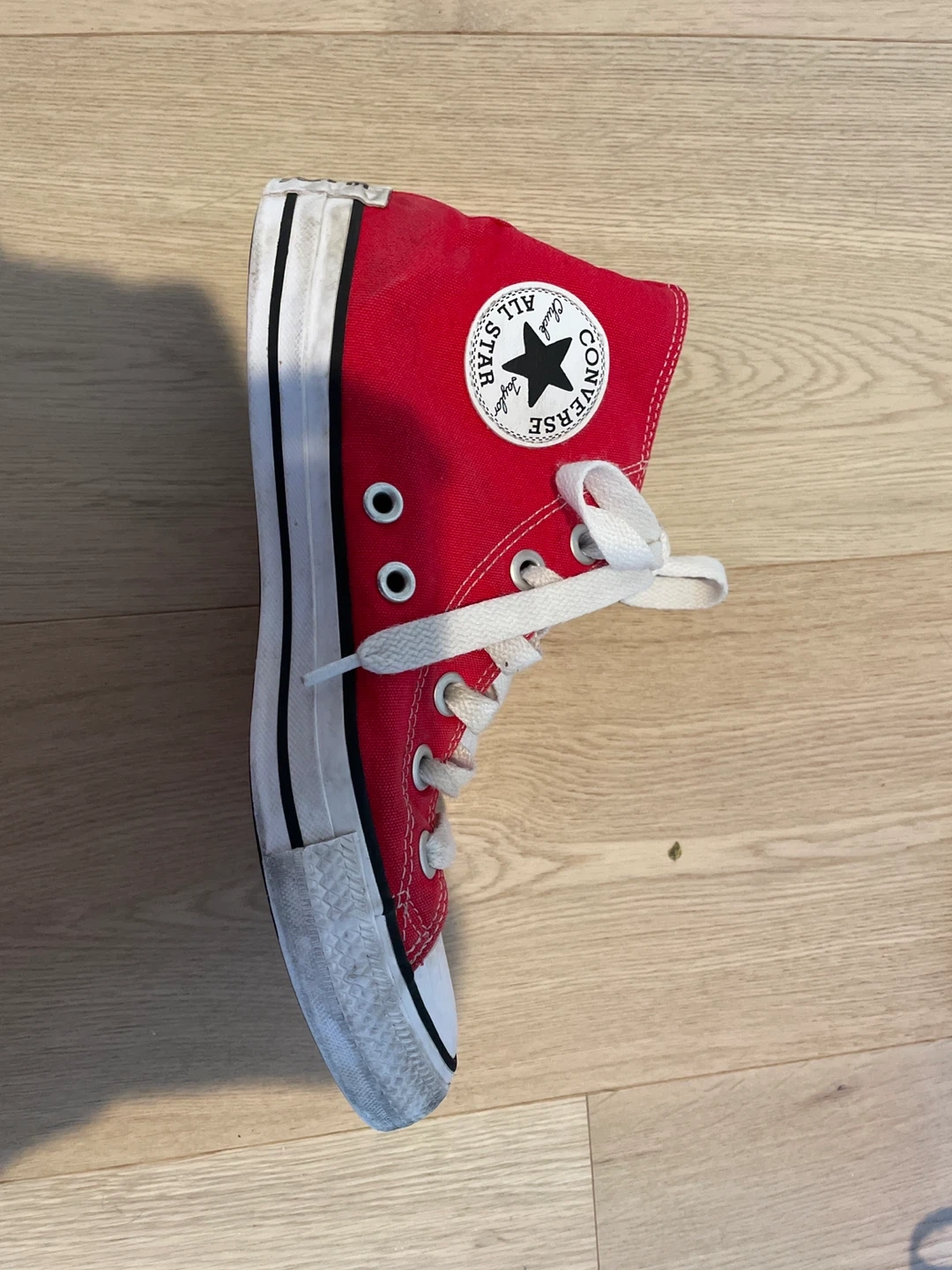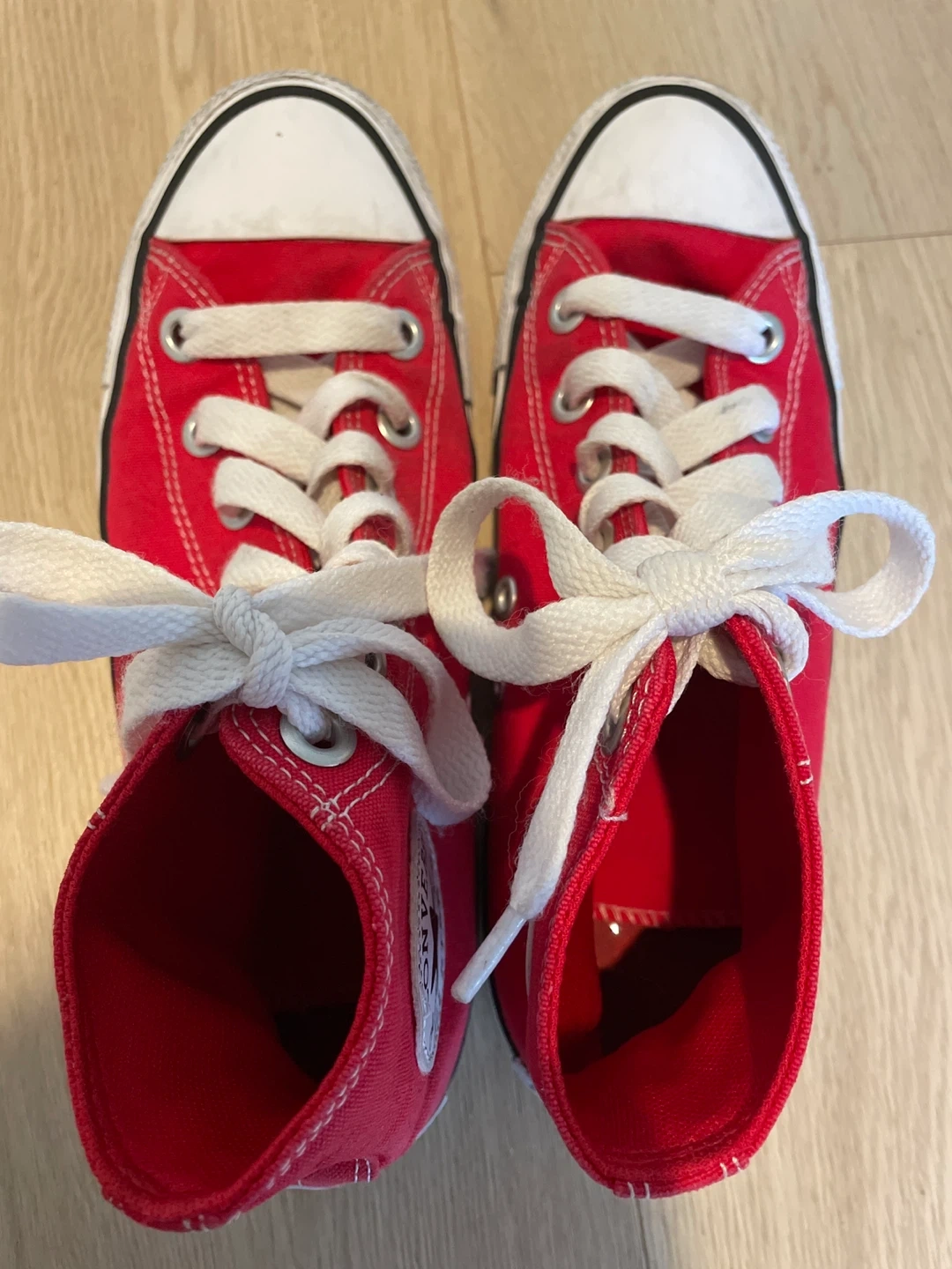 10Selling a pair of red Converse Chuck Taylor All Star high tops. They're in good condition with some signs of wear, but still have lots of life left! Perfect for adding a pop of colour to your outfit.