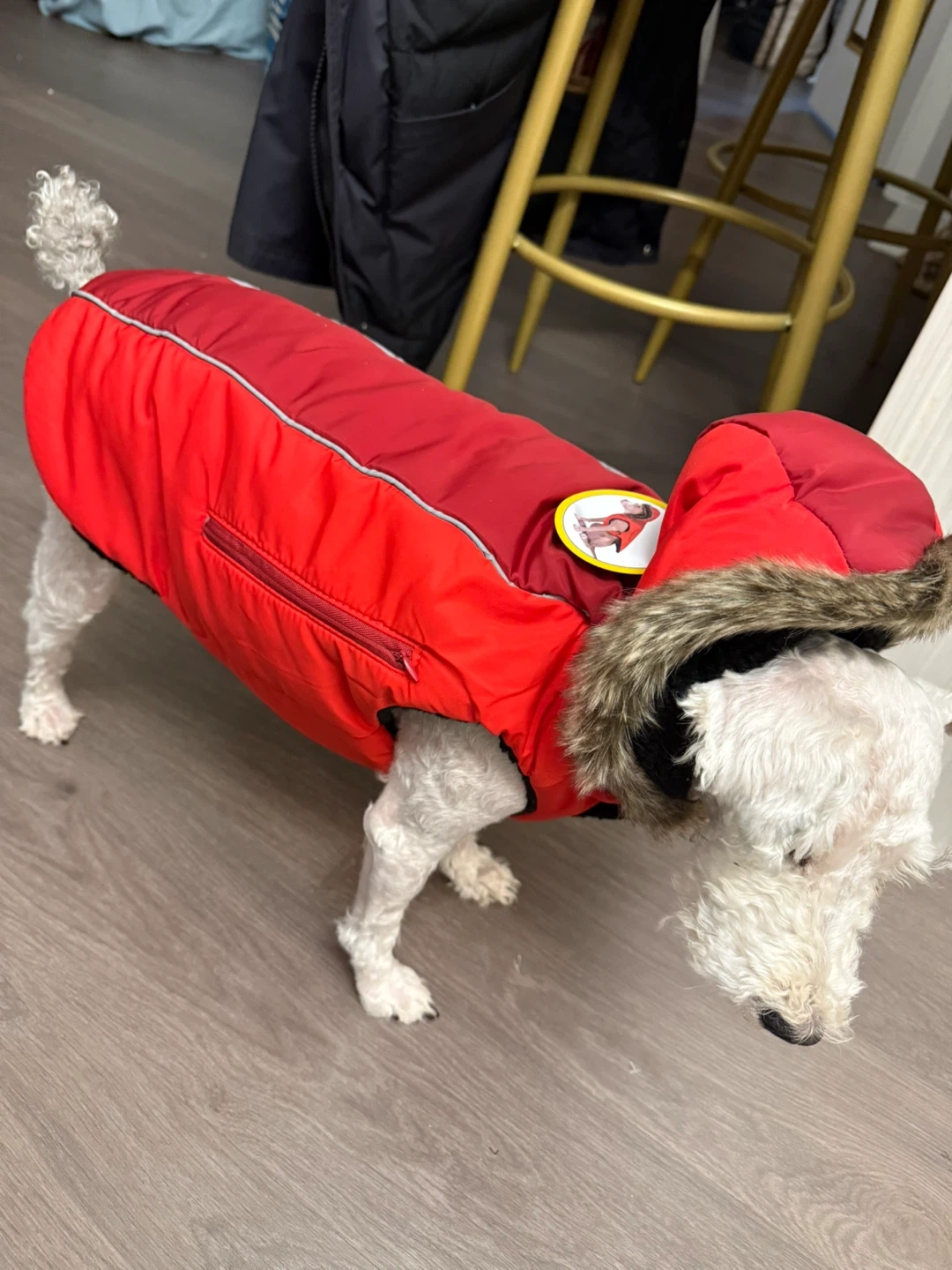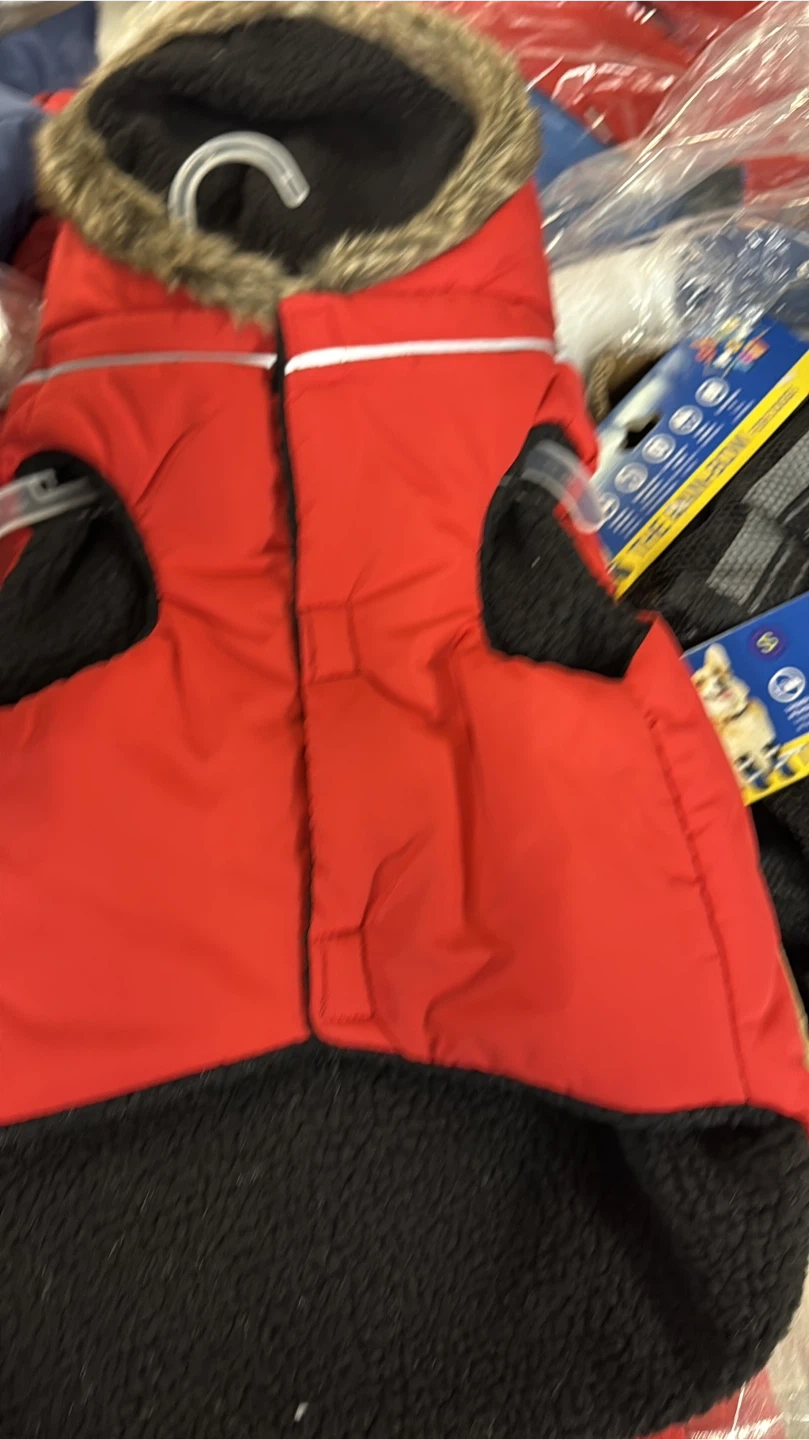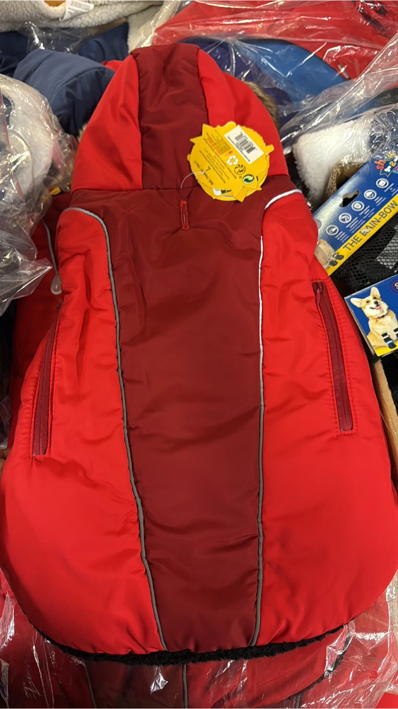 Brand new Size L suitable for 6 to 9 kg Keep your furry friend warm this winter with this stylish red dog coat! It comes with a cozy hood to protect them from the elements. Perfect for those chilly walks in the snow