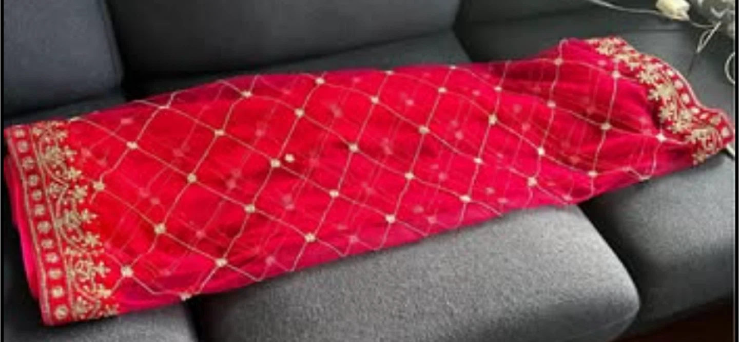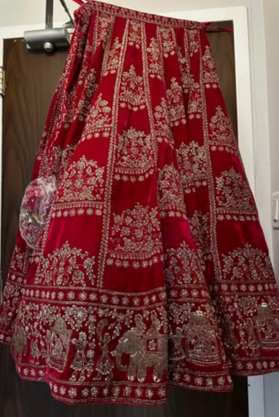 10Beautiful dark pink lehenga choli set with intricate embroidery. Perfect for a special occasion! This beautiful wedding Lehenga, new, never used is available for purchase.