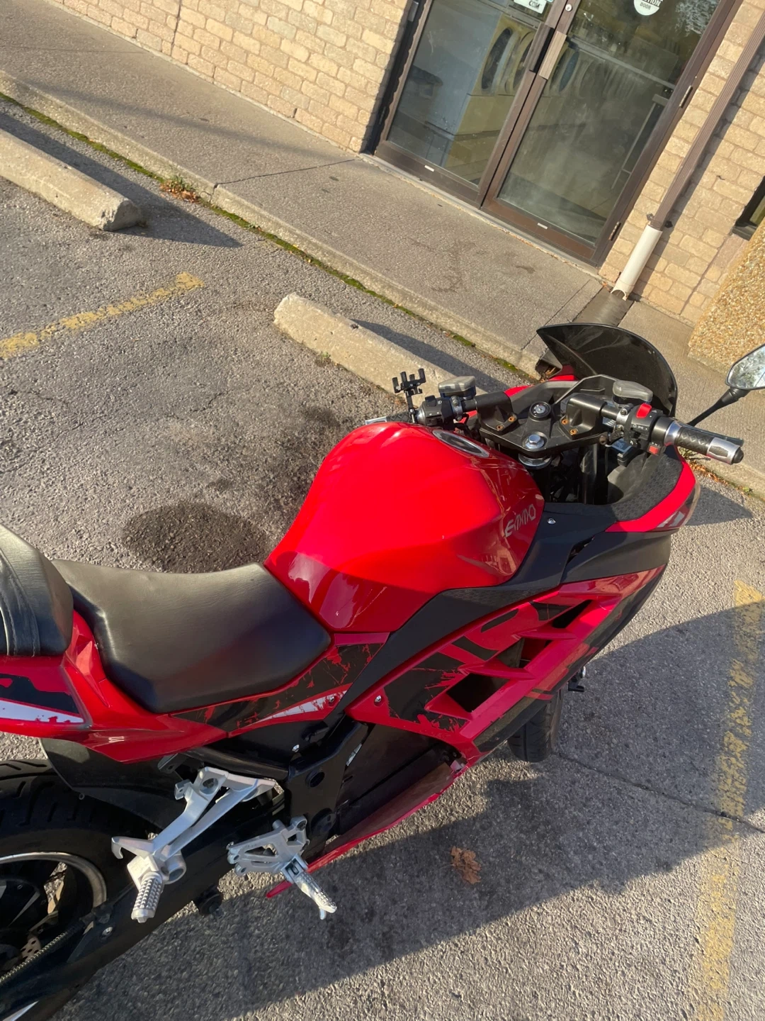 Selling a red Emmo electric motorcycle. It's in good condition and ready for a new owner! It's a fun and eco-friendly way to get around town