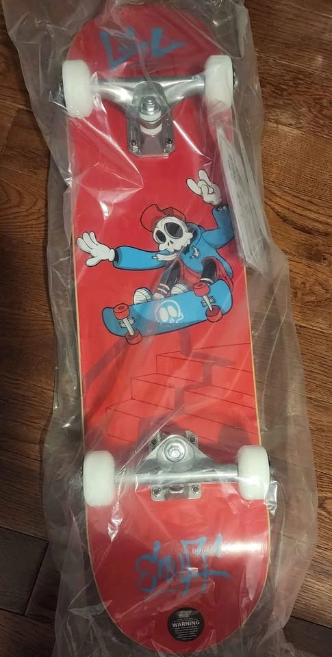 Bought it for my son's birthday, but it came in too late. It's brand new in the box, never used. It's ready to use straight away. 7.75". 7-ply maple deck for maximum pop and durability. Medium 54mm diameter wheels for versatile use, whether you're on the street or at the skatepark. Soft 90A wheels for comfortable gliding. Located in Minesing