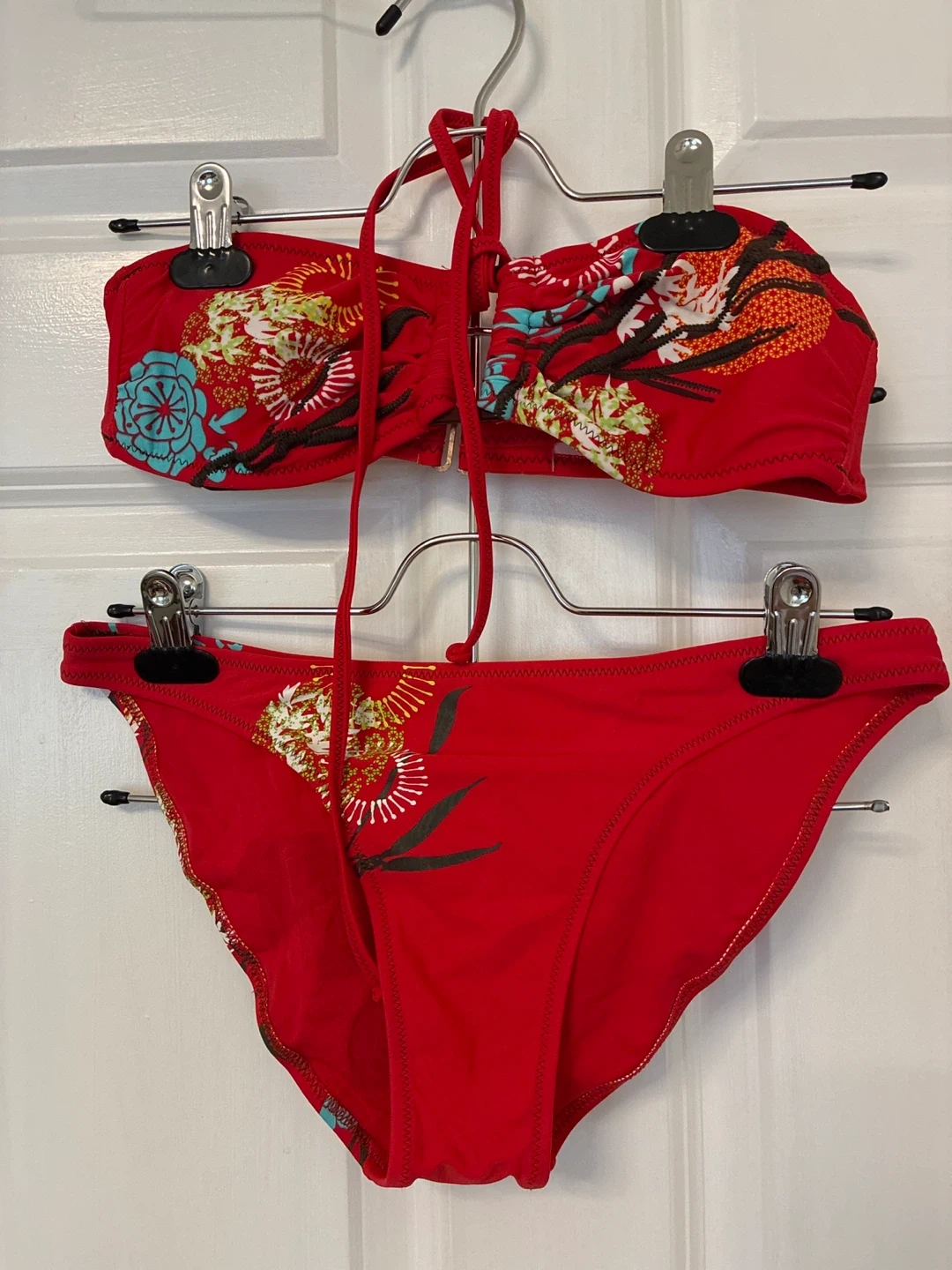 118Selling a cute red bikini set with a floral pattern. It's in great condition and ready for summer fun!