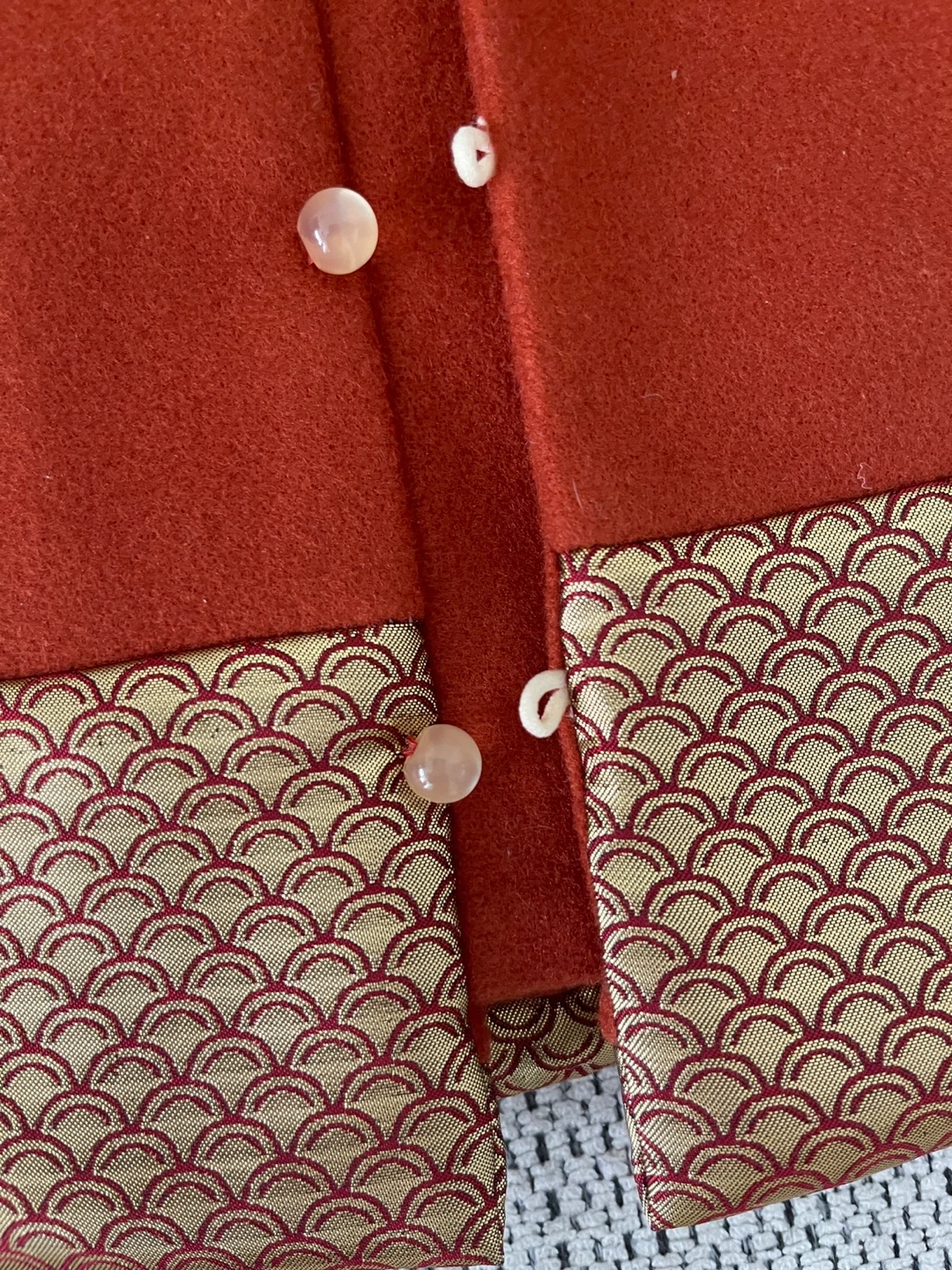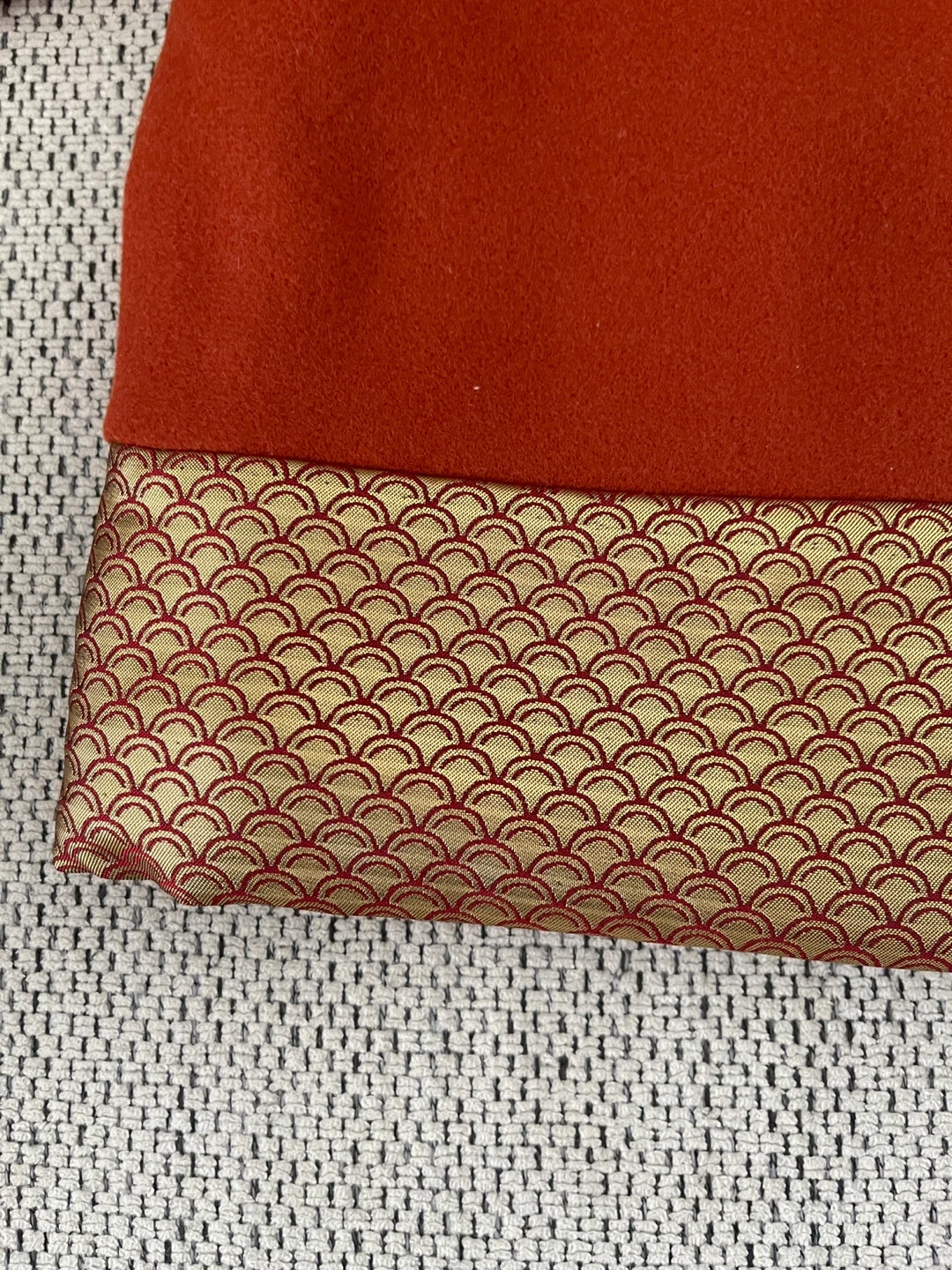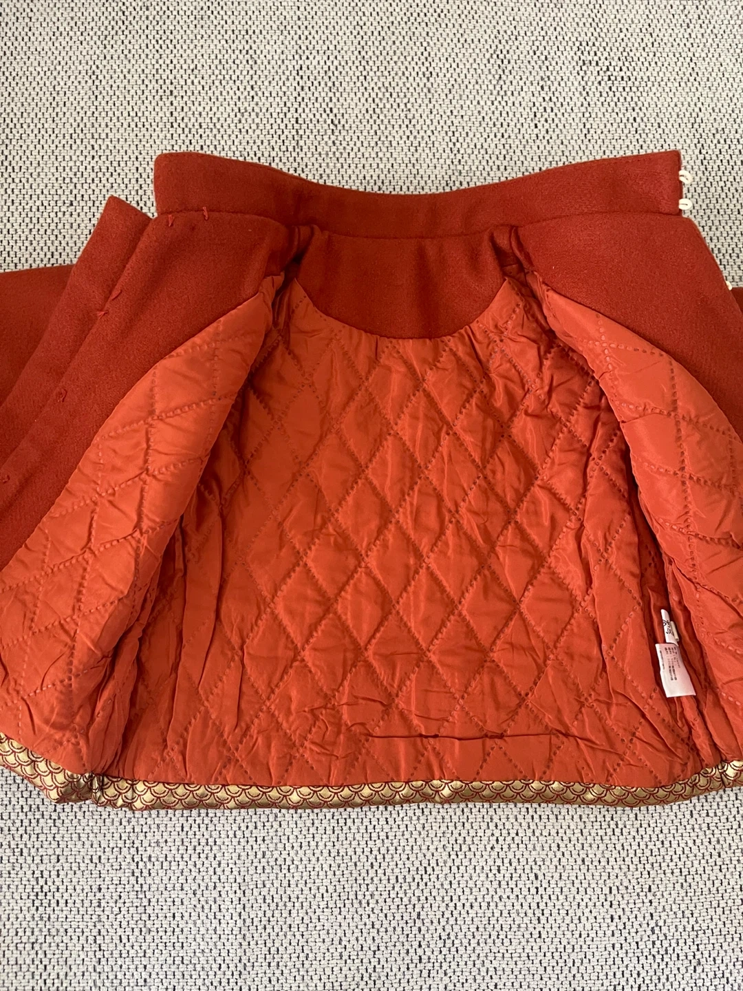 1000+A cute red jacket with gold detailing for your little one! It features a mandarin collar and button-up closure Good condition