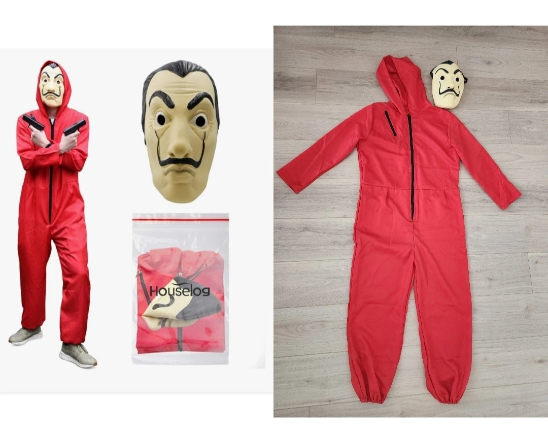 89Selling a red jumpsuit costume, complete with the mask! This costume is perfect for Halloween or costume parties! Size: Medium (adult) - (from shoulder to bottom it is approx. 57in or 145cm)