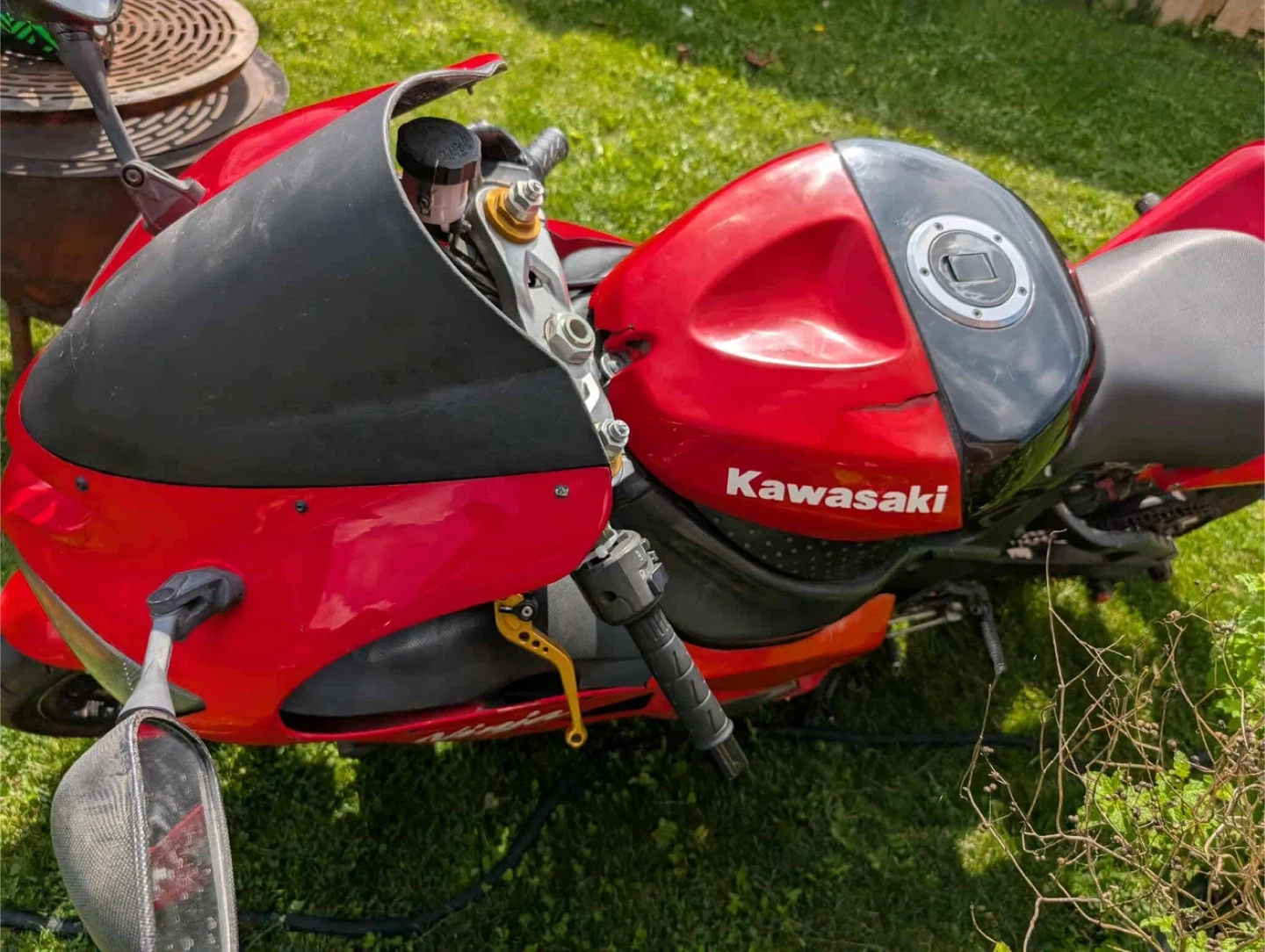 17Selling a red Kawasaki motorcycle. It shows signs of use, as seen in the photos. Great for someone looking for a project or parts!