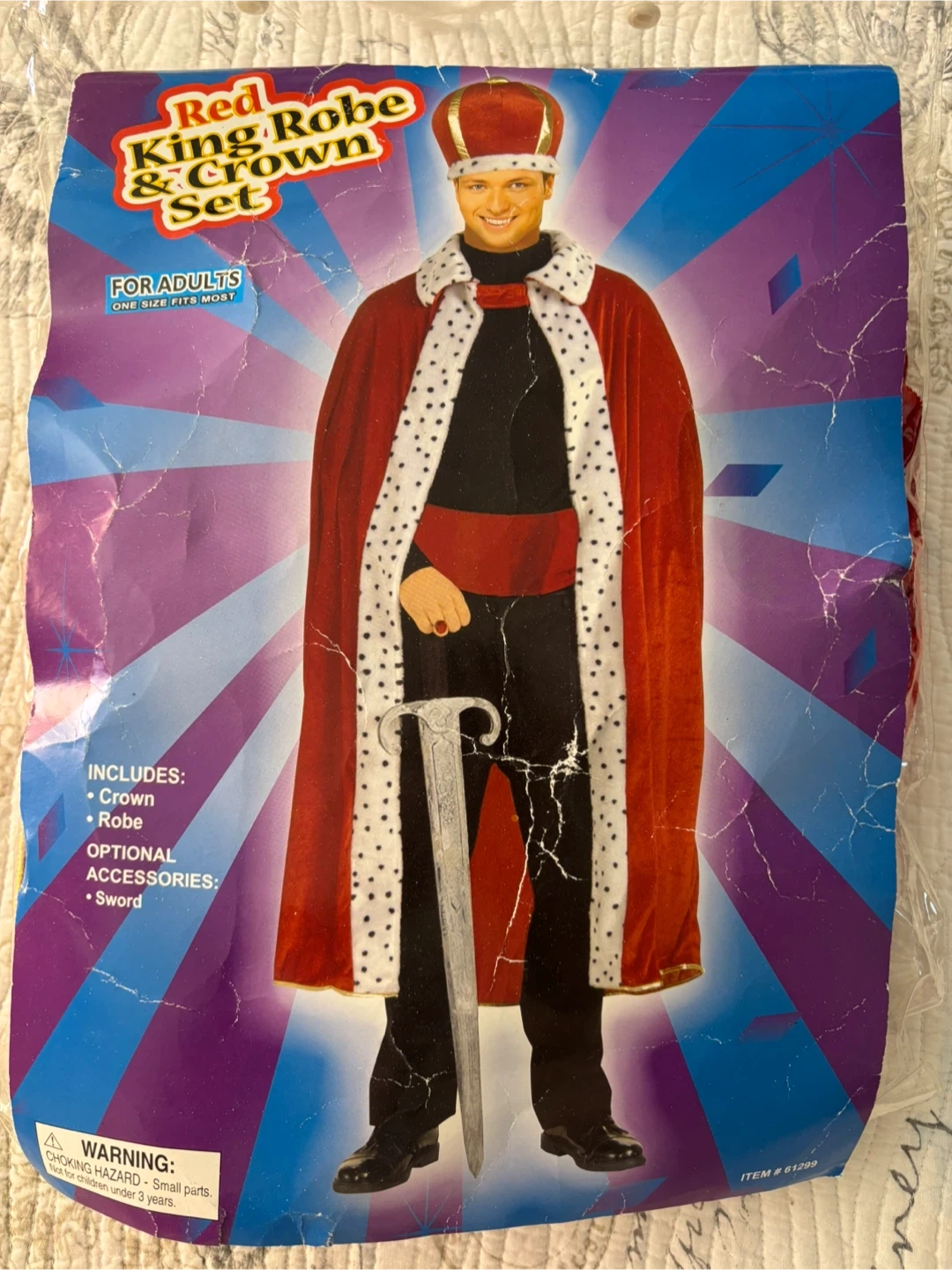 10Get ready to rule with this red king robe and crown set! Perfect for adults, this costume includes the crown and robe. Optional accessory: sword (not included).