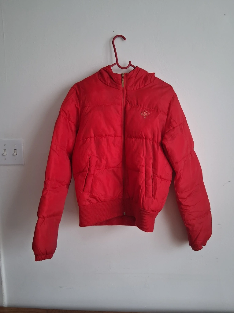 60Here's a stylish South Pole red puffer jacket ready for a new home! It's in great condition and perfect for staying warm on chilly days. The color is a vibrant red that is sure to make you stand out. It's a comfortable and fashionable choice!