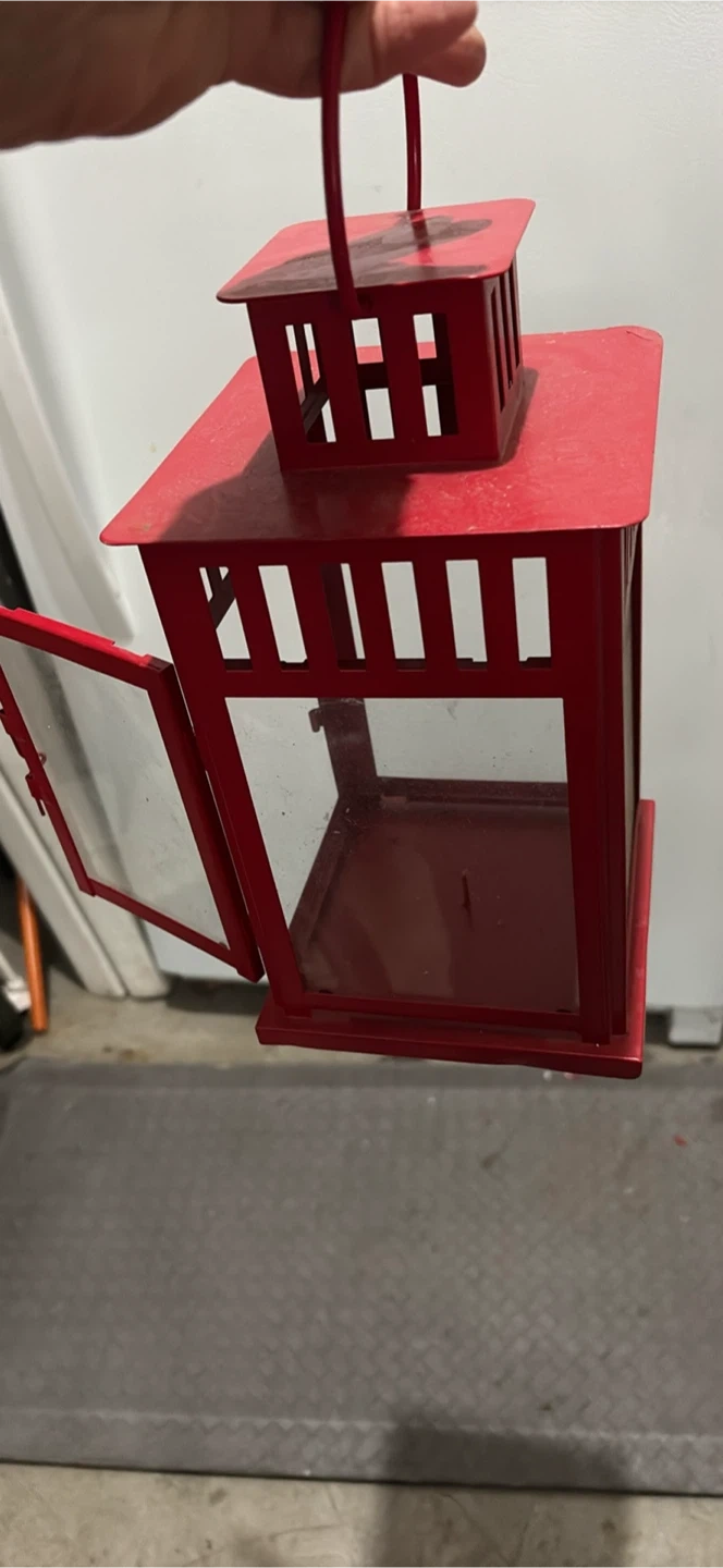 113A red metal decorative lantern in good condition, Perfect for adding a touch of Christmas decor for your home, inside or outside…**pick up on Chandos Drive in Chicopee area of south Kitchener N2A4H8
