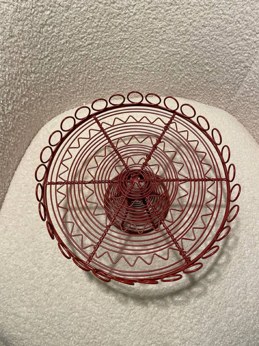 Selling a cute red metal wire cake stand! It's perfect for displaying your baked goods or other treats. It's in great condition and ready for a new home