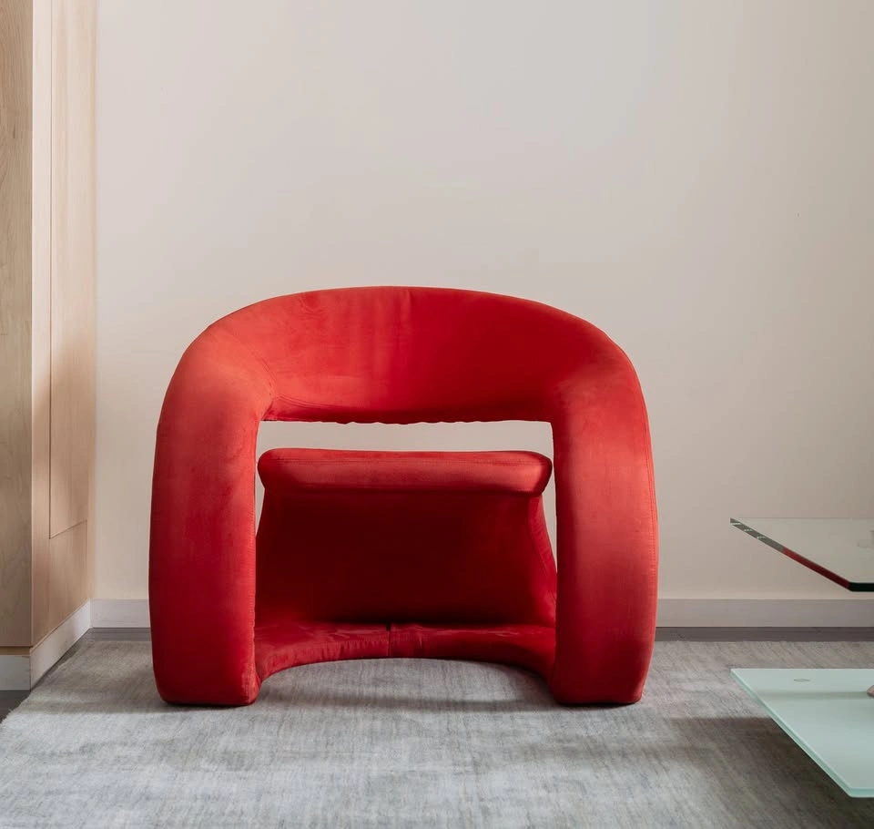 15Jaymar Tongue armchair in red microsuede. It's in great condition. Condition: Excellent- Wear consistent with age and history. Please note that this is a vintage item and it is perfectly imperfect in its own way. Dimensions (each): 22" W x 30" D x 30" H Available for local pickup only in downtown Toronto. They are not super heavy but definitely a good idea to have 2 people to move it into place.