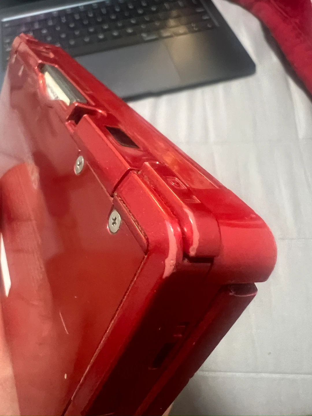97Selling a red Nintendo 3DS! It's in used condition, as you can see in the photos, but still works great. Comes with the stylus.