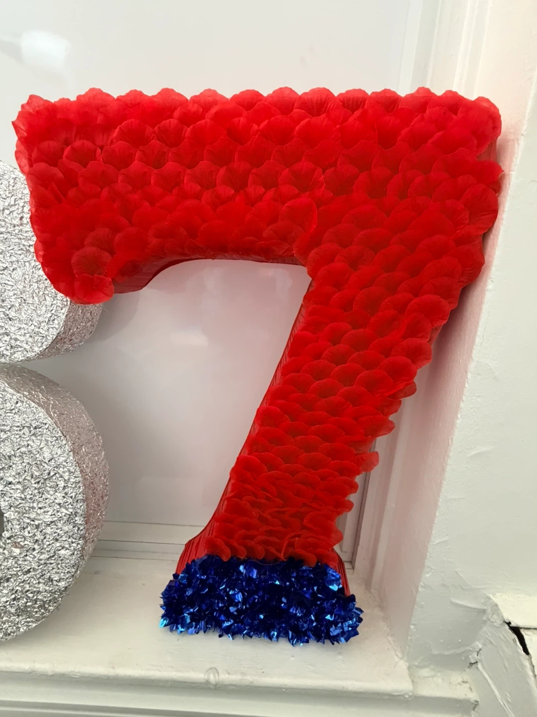 125A red number 7 decoration, perfect for parties or events Height: 50 cms