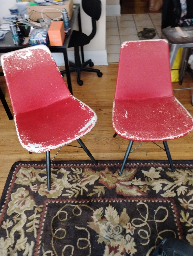 removable upholstery! red chairs pair