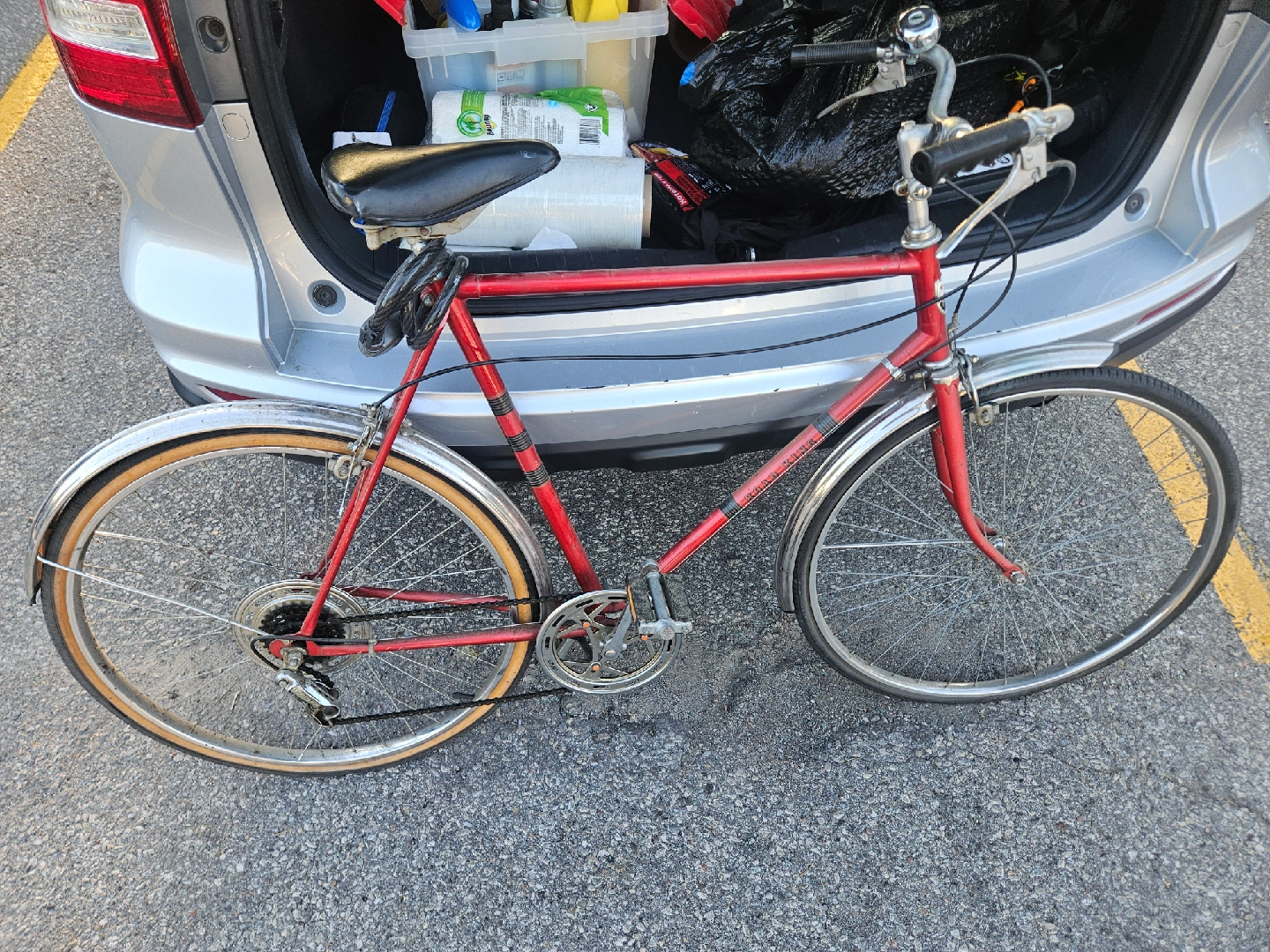 65Selling a red road bike! It's in used condition, perfect for getting around town or enjoying a leisurely ride. tires just need to be pumped