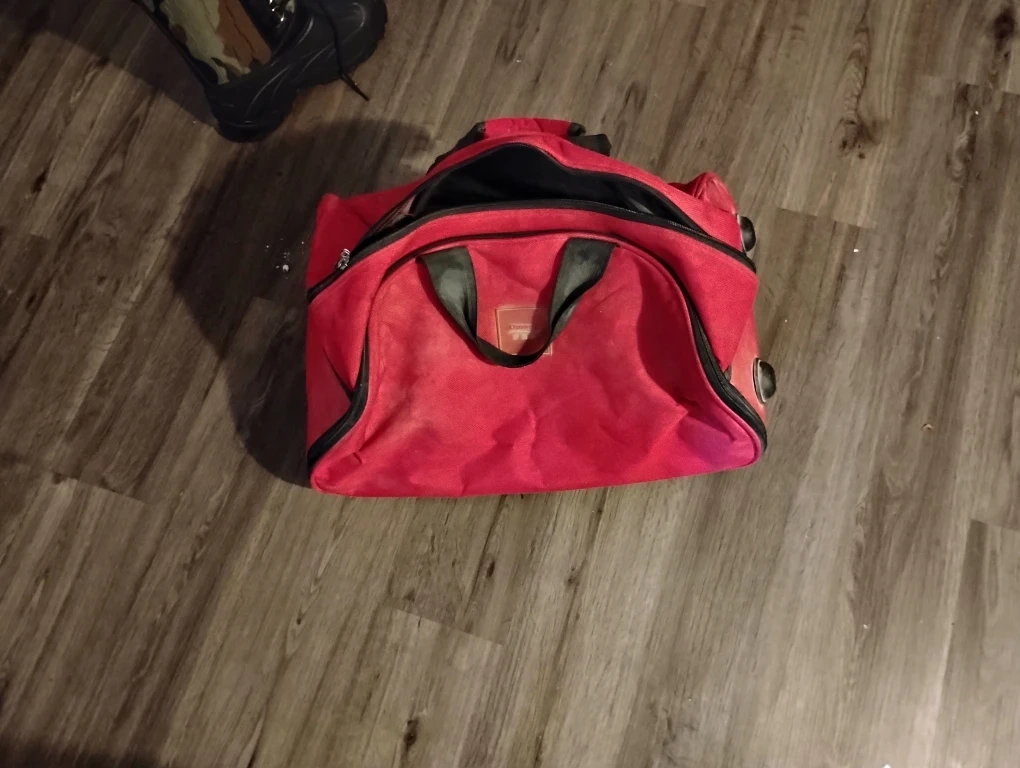 77Red rolling duffel bag in good condition. tool bag