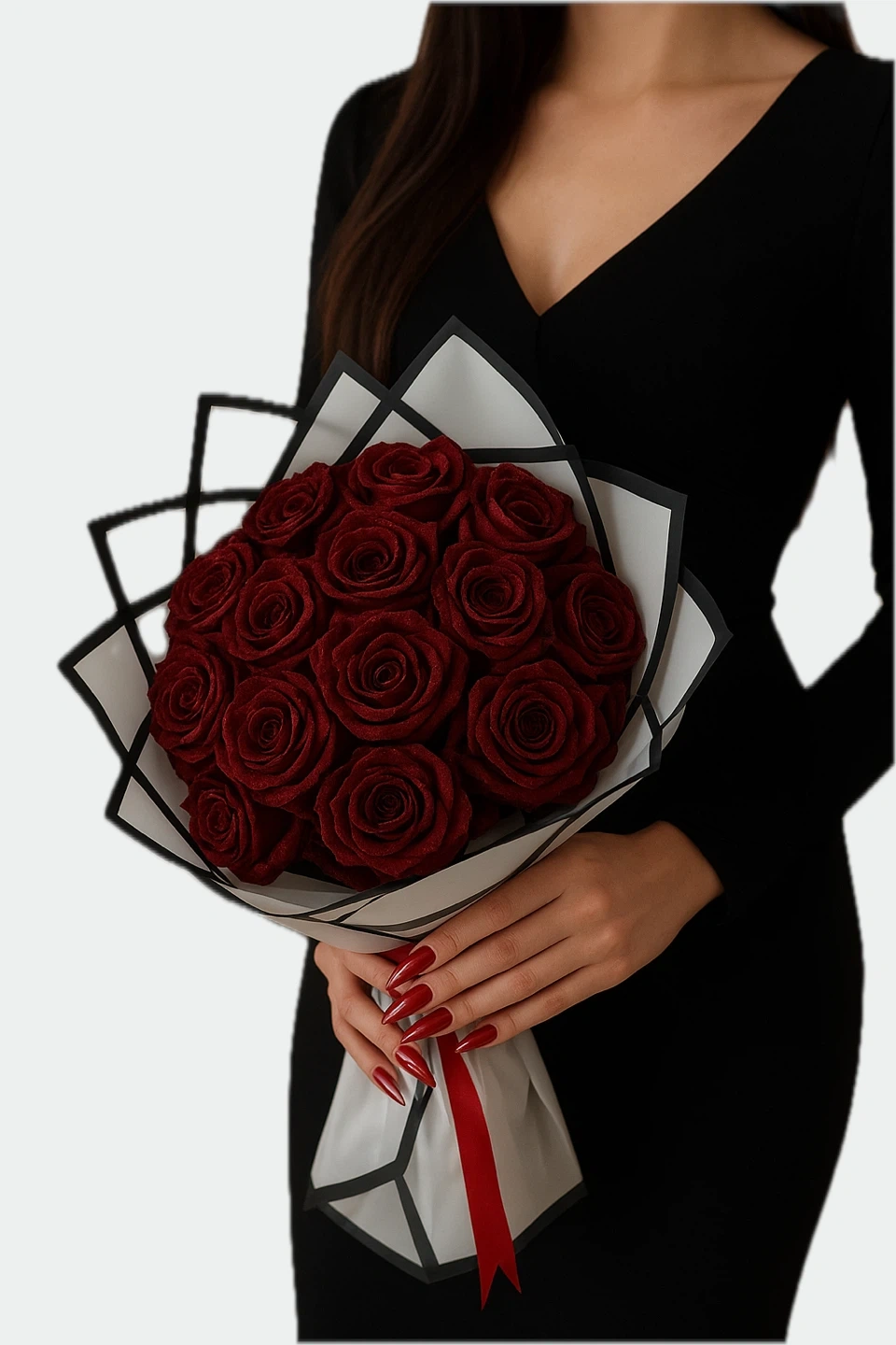123A lovely bouquet of red roses, perfect for a special occasion or just to brighten someone's day! The roses are beautifully arranged and wrapped, ready to be gifted