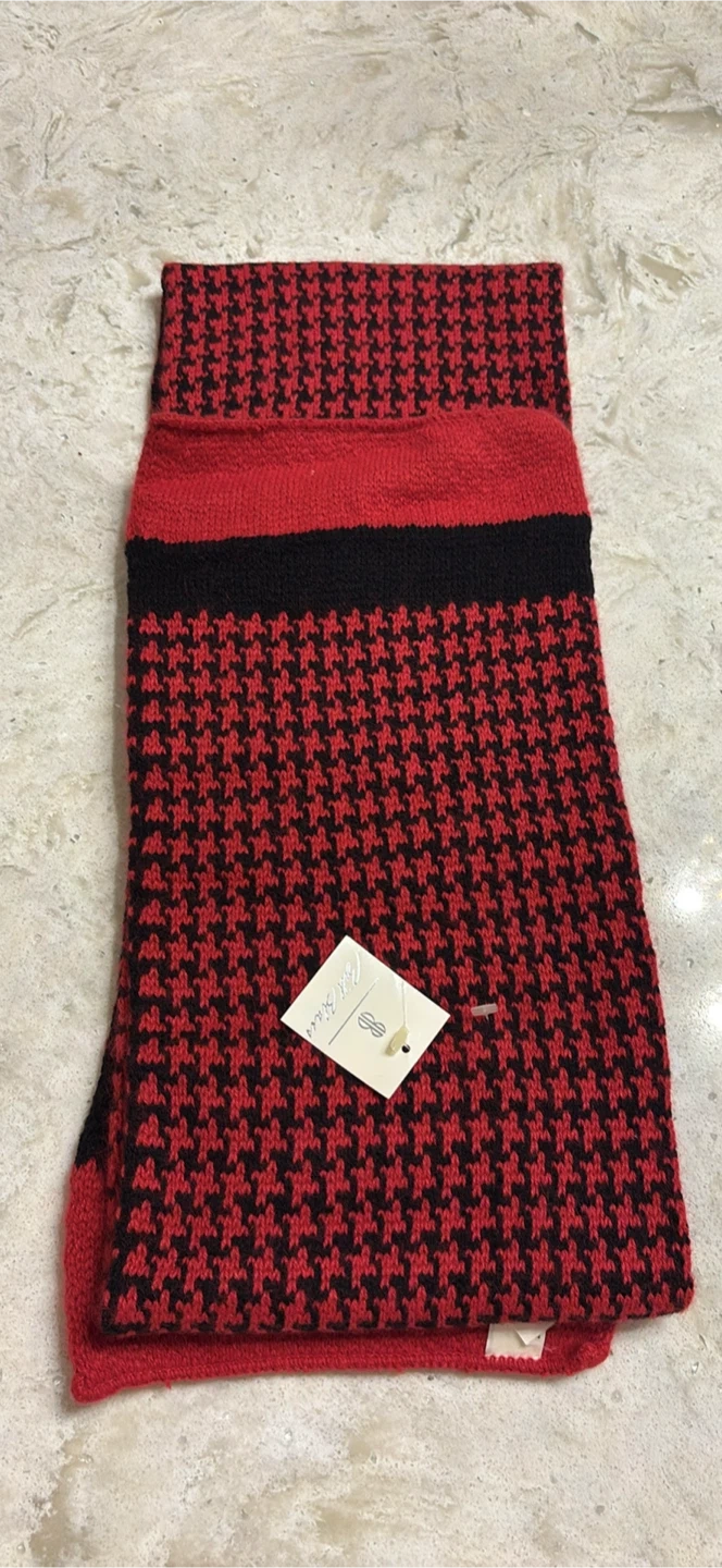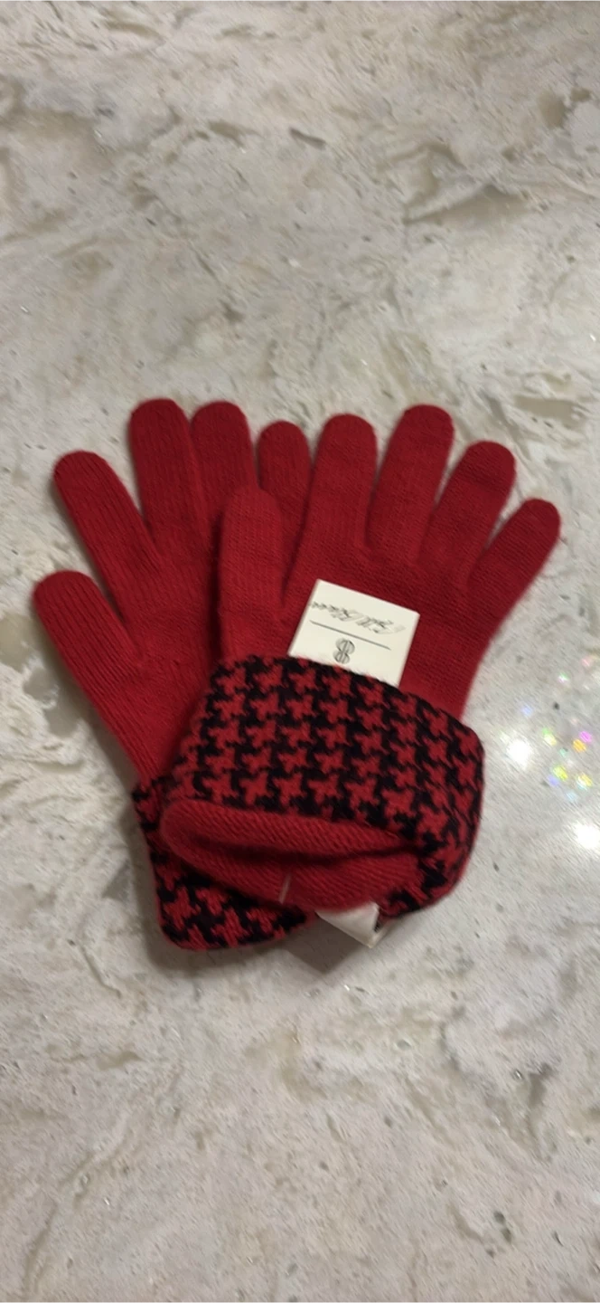 Selling a red scarf and gloves set! The gloves have a unique pattern on the cuff, and the scarf complements them perfectly. Great for keeping warm during the colder months!