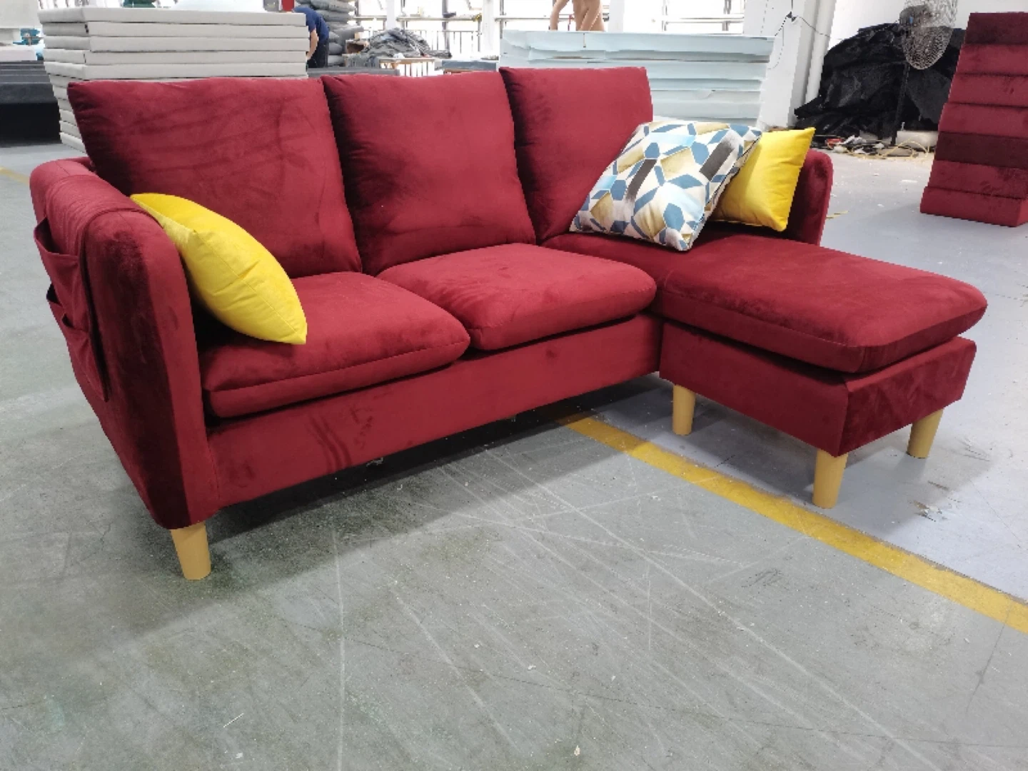 65Selling BRAND NEW (SEAL PACKED) comfy red sectional sofa that comes with an ottoman! The sofa features soft cushions and a convenient side pocket for storing remotes or magazines. Perfect for a cozy living room setup!