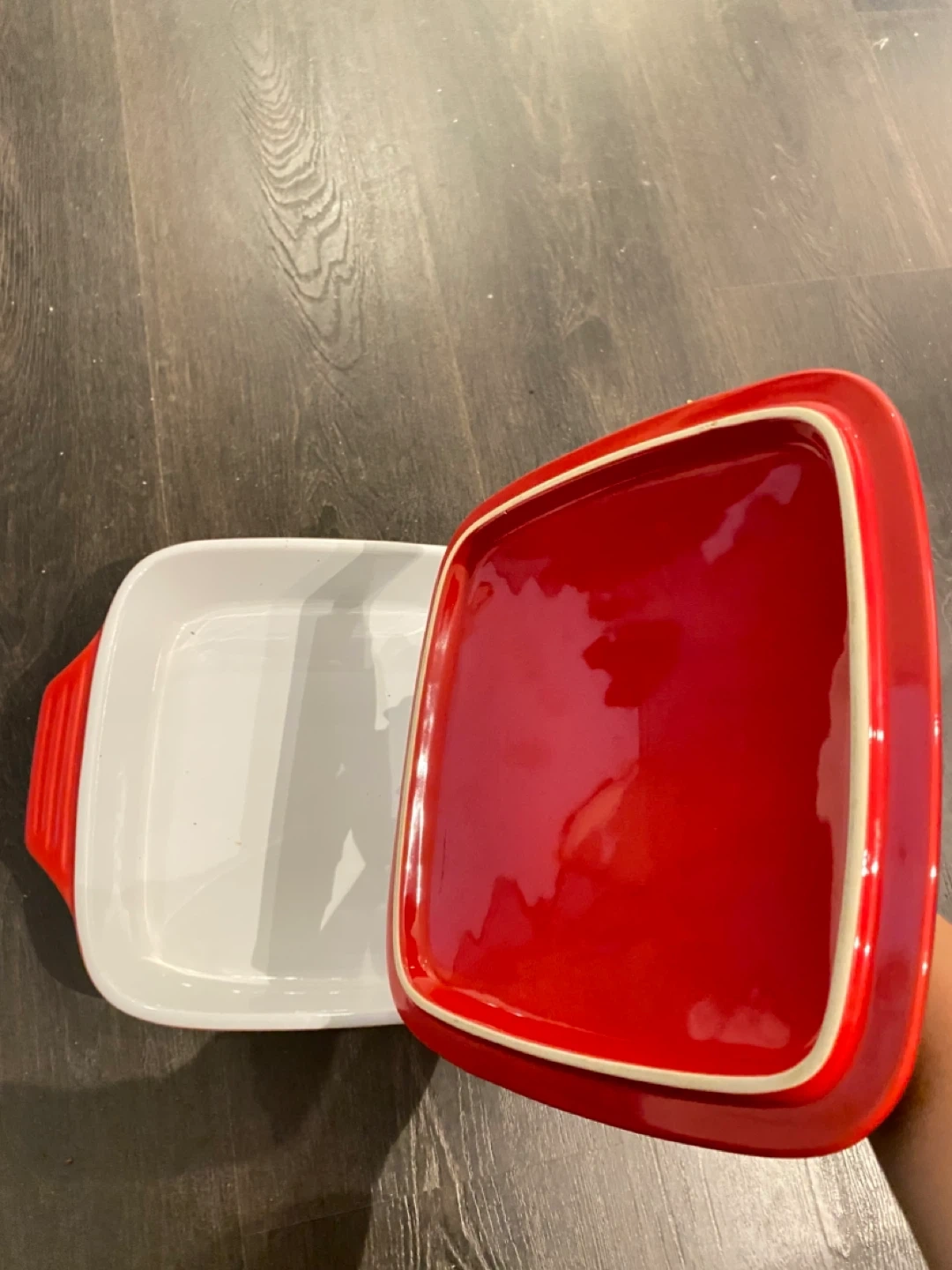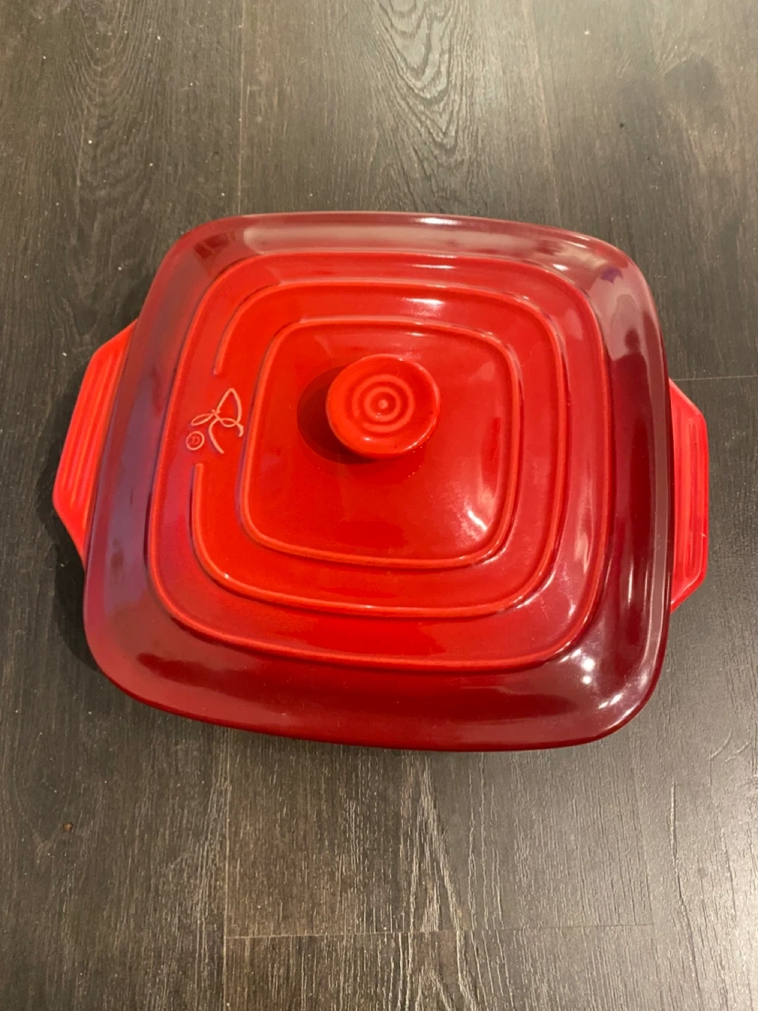 Selling a red square casserole dish! It's designed oven-safe, microwave safe and is dishwasher safe. Perfect for most cooking needs! Only used once. Please pick up.