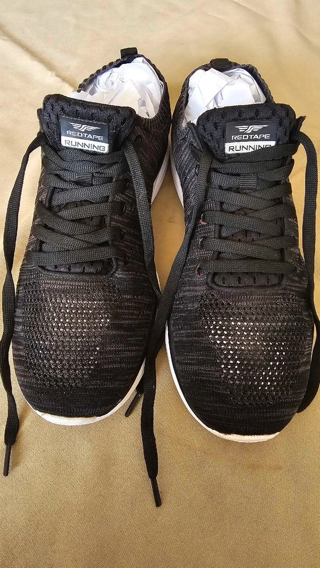 18I'm selling these Red Tape running shoes, perfect for your daily jogs or workouts. They are in used, but good condition, offering both comfort and style. These shoes feature a sleek black design with a breathable knit upper and a supportive sole. Here are some additional details: * Brand: Red Tape * Type: Running Shoes * Colour: Black * Size: See photos * Condition: Good Please note: If the ad is up, the shoes are available.