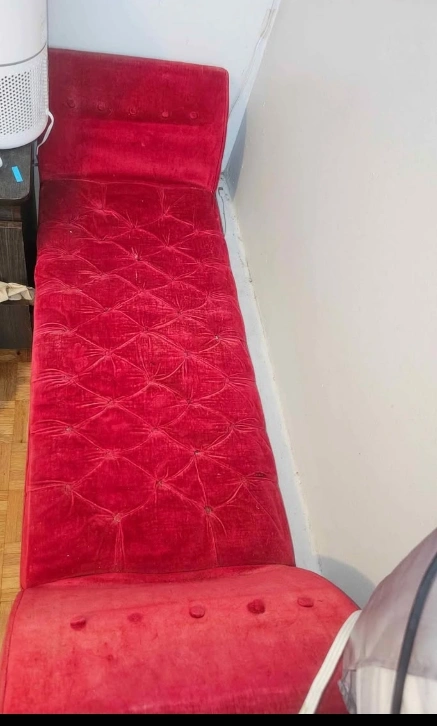 Selling a red tufted chaise lounge. It's in good condition 1 leg does need fixing but can be seated on and would be a great addition to any room!
