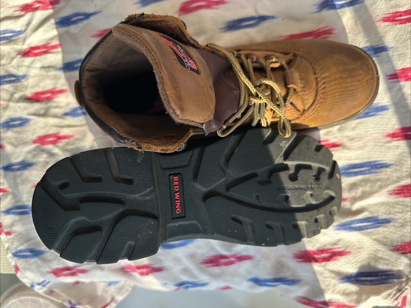 131Selling a pair of Red Wing work boots in brown leather. They're in good condition and ready for a new owner! They have only been worn 4 times in total.