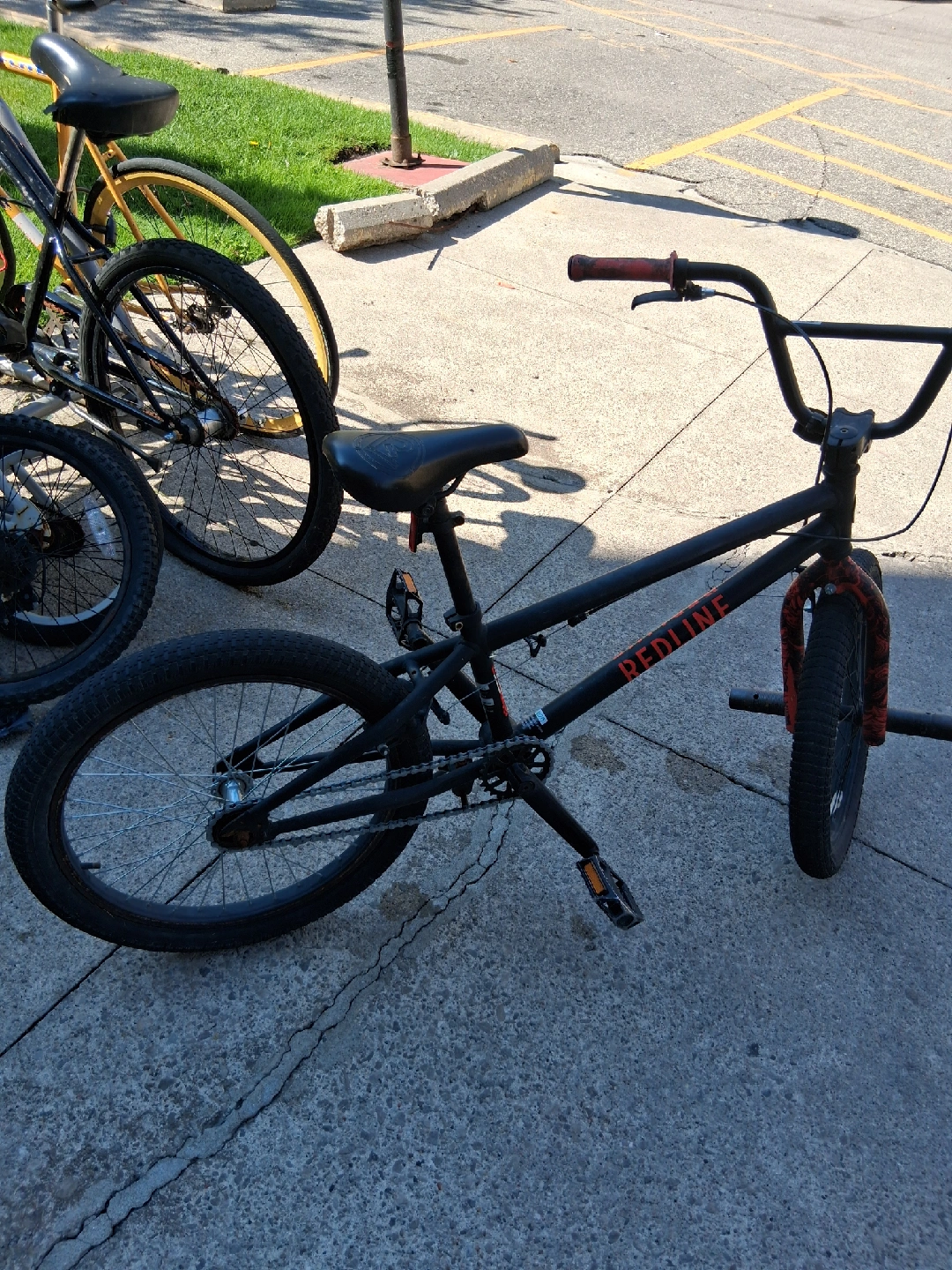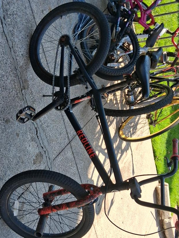 Selling a Redline BMX bike in black. It's in good condition and ready to ride! Great for anyone looking to get into BMX or upgrade their current ride selling as is