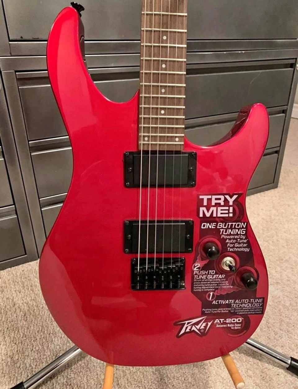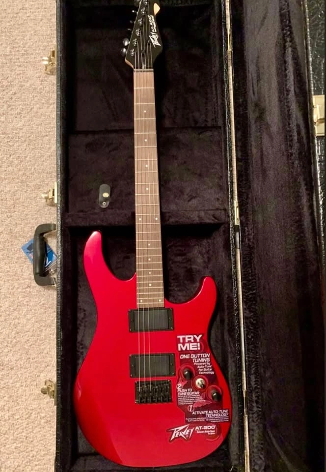0Purchased brand new in 2015, the Peavey AT-200 Auto Tune Electric Guitar (Peavey’s introduction to self auto tune during the Gibson Robot technology without the electronic machine heads). This was a special order (they also came in a glossy black model). Quite the innovative strategy by quickly changing to regular standard tuning with a tap on the volume button from tunings such as baritone, open G / D / DADGAD. Possibilities are endless and easy to configure. Guitar comes with 2 dual humbucker pick ups, 3 way switch , glossy red candy apple finish ( promo sticker still on body ) plus a new hard shell case with CD rom included for updates. Guitar is in MINT condition ( clear plastic still on rear plates ), you won’t find one like this !!! Rare indeed. Great guitar for live gigs, why transport 3-4 guitars at a show when everything can be accomplished with one main guitar. Bought as an investment & seen a few listed used condition selling over $800. Asking $750 firm . Sorry no trades, just liquidating stock. A cool addition to any musician’s artillery !! Thanks for checking my ad & yes it’s still available if this advertisement is up.