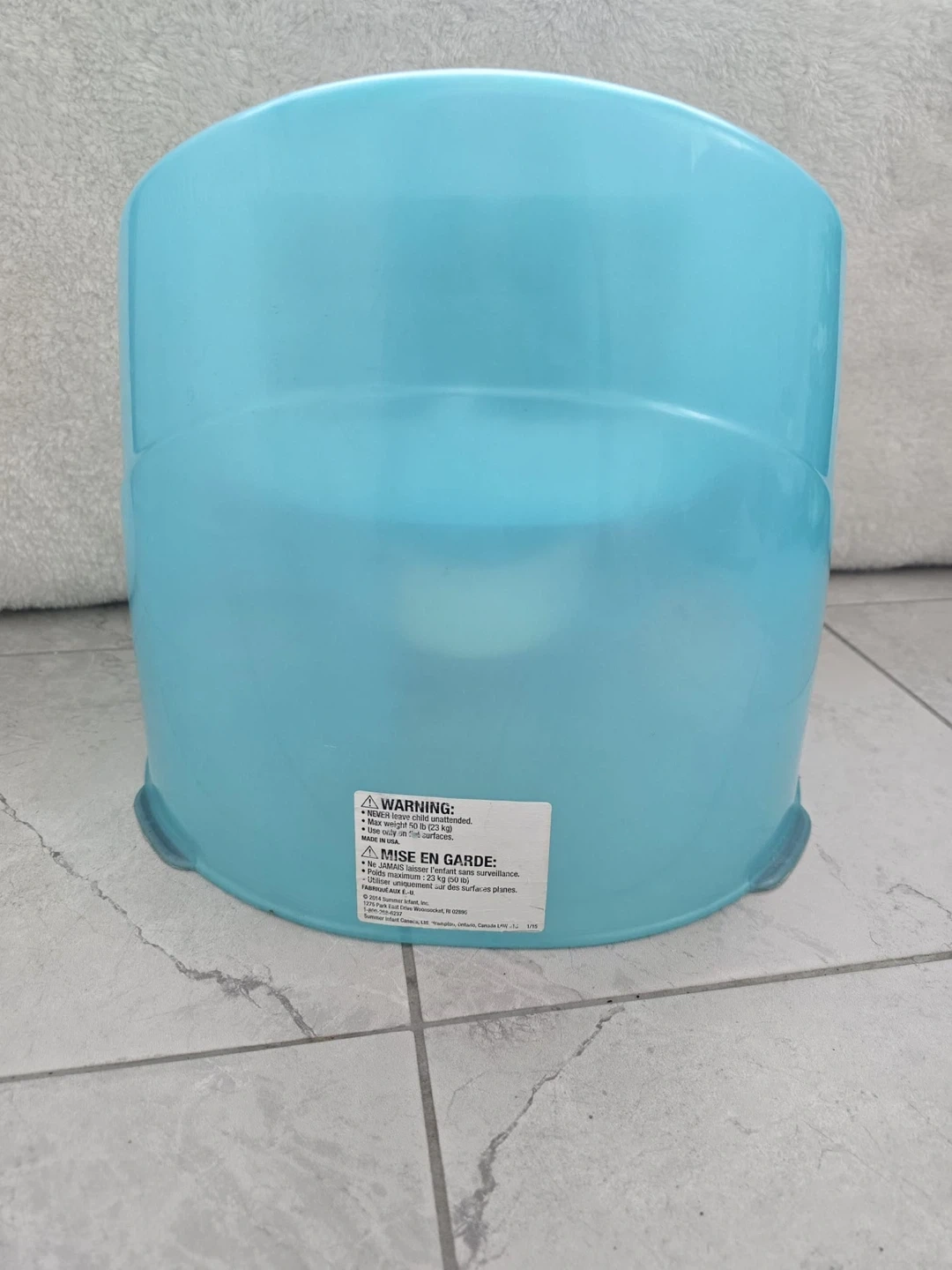 This Summer Infant Lil' Loo toddler potty is designed for easy use and cleaning. It's a blue potty with a white insert. The potty is made of plastic and has non-slip feet for stability. It supports children up to 23 kg.