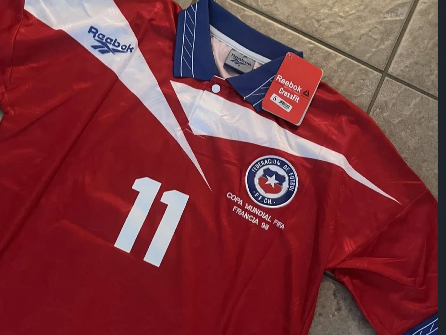 10Selling a Reebok Chile 1998 World Cup soccer jersey! It's a size small and features the number 11 with the name MORA on the back. The jersey has the Federación de Futbol Chile logo and the Copa Mundial FIFA Francia 98 emblem. Great for any soccer fan!