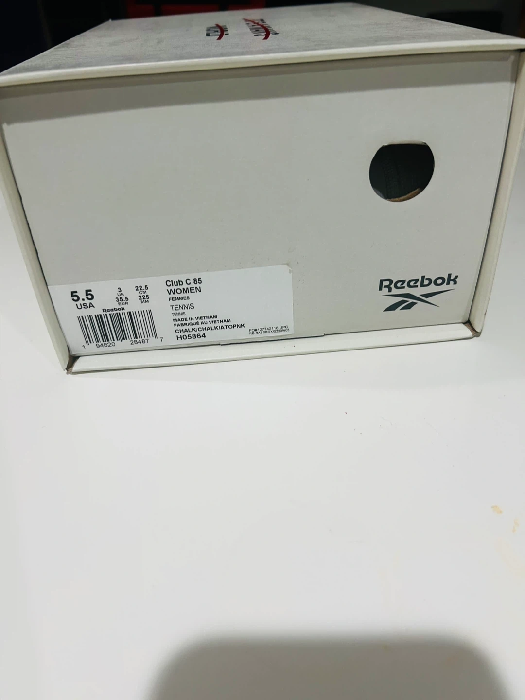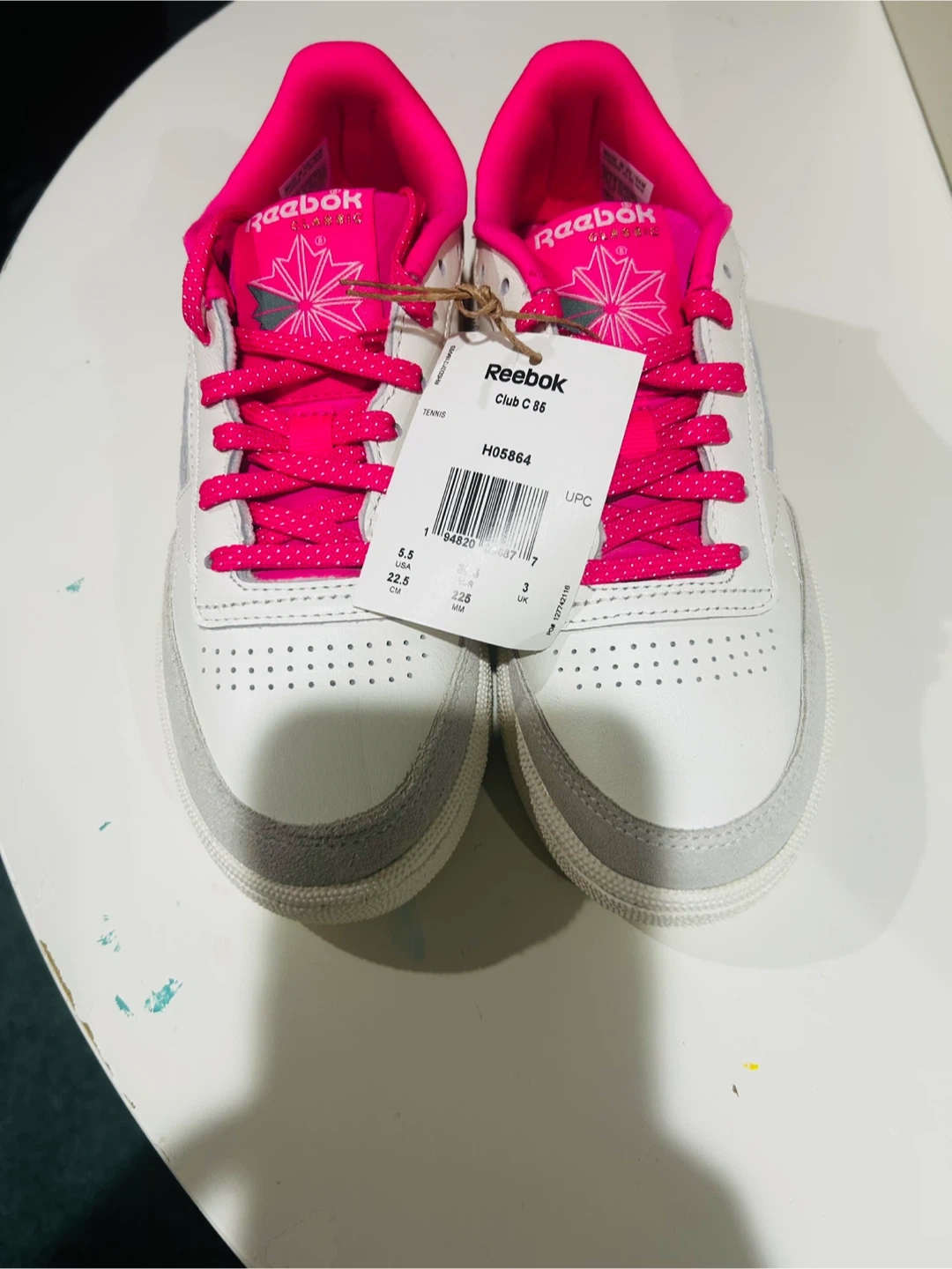 91Selling a pair of Reebok Club C 85 women's tennis shoes in size 5.5! They're brand new and come with the original box. The shoes are white with pink accents, perfect for adding a pop of colour to your outfit Pickup in Ajax