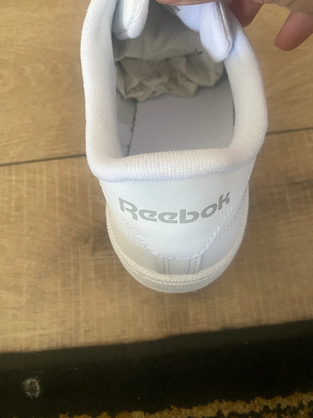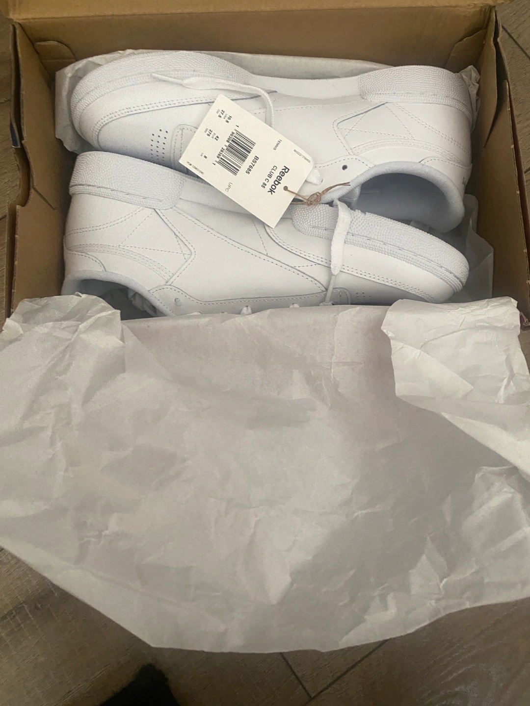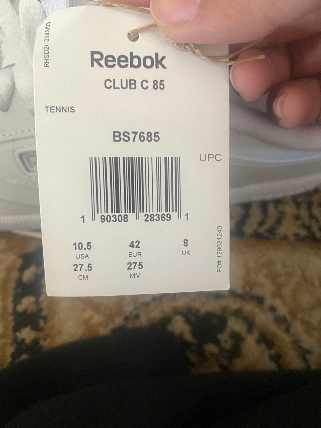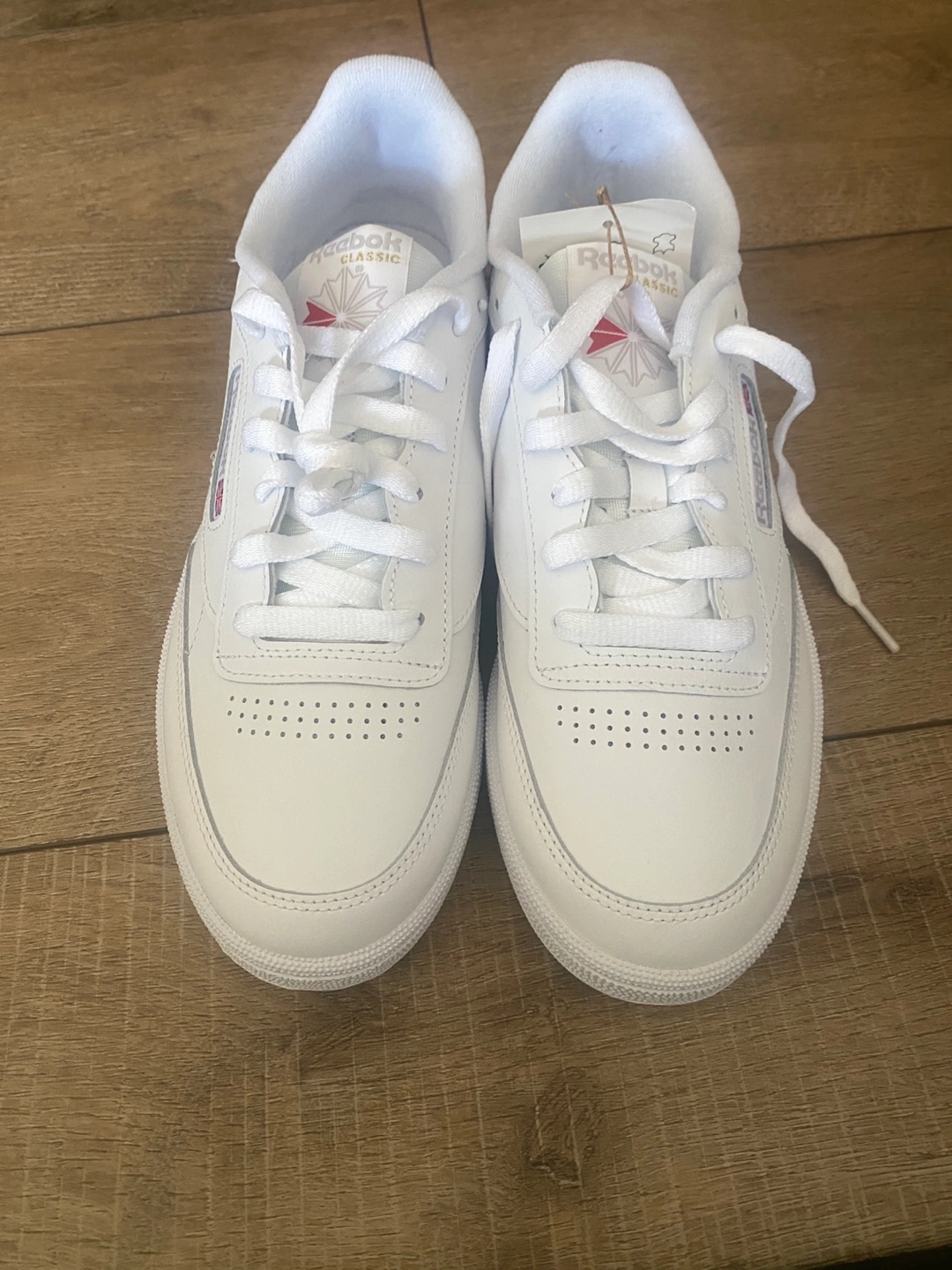 Women's Reebok Club C 85 tennis shoes. Size 8 UK, 10.5 US, 42 EUR. White/Light Grey colour. Brand new with tags. Made in Vietnam. I have never worn these shoes because they are a wrong size.