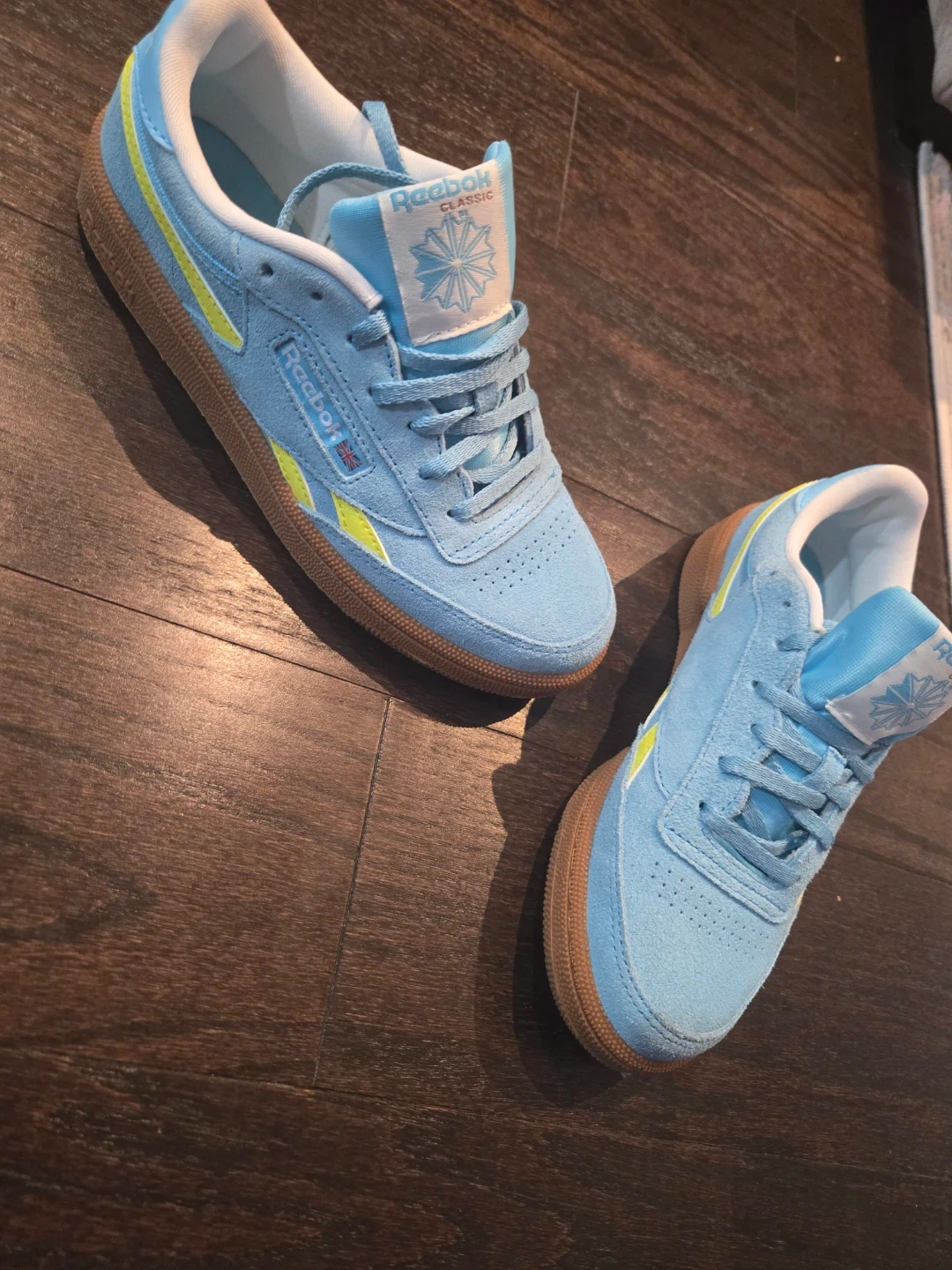 709Selling a pair of Reebok Club C Revenge sneakers in a cool blue suede! These classic kicks feature the iconic Reebok logo and a gum sole for a retro vibe. They're in great shape and ready for a new home. Perfect for adding a pop of colour to your everyday style!