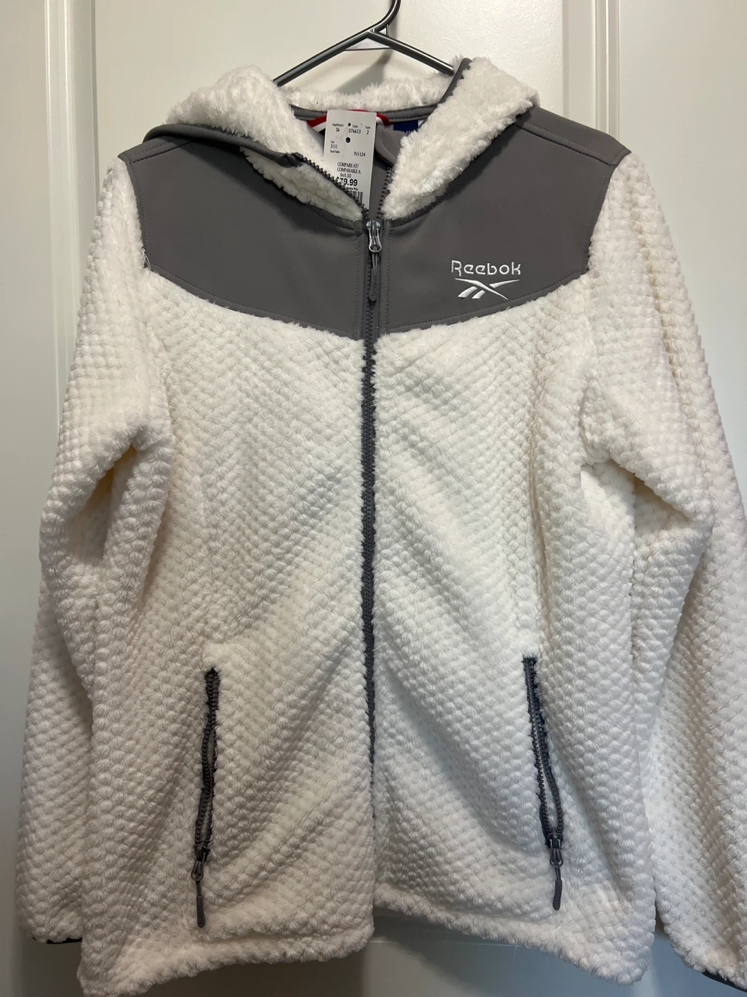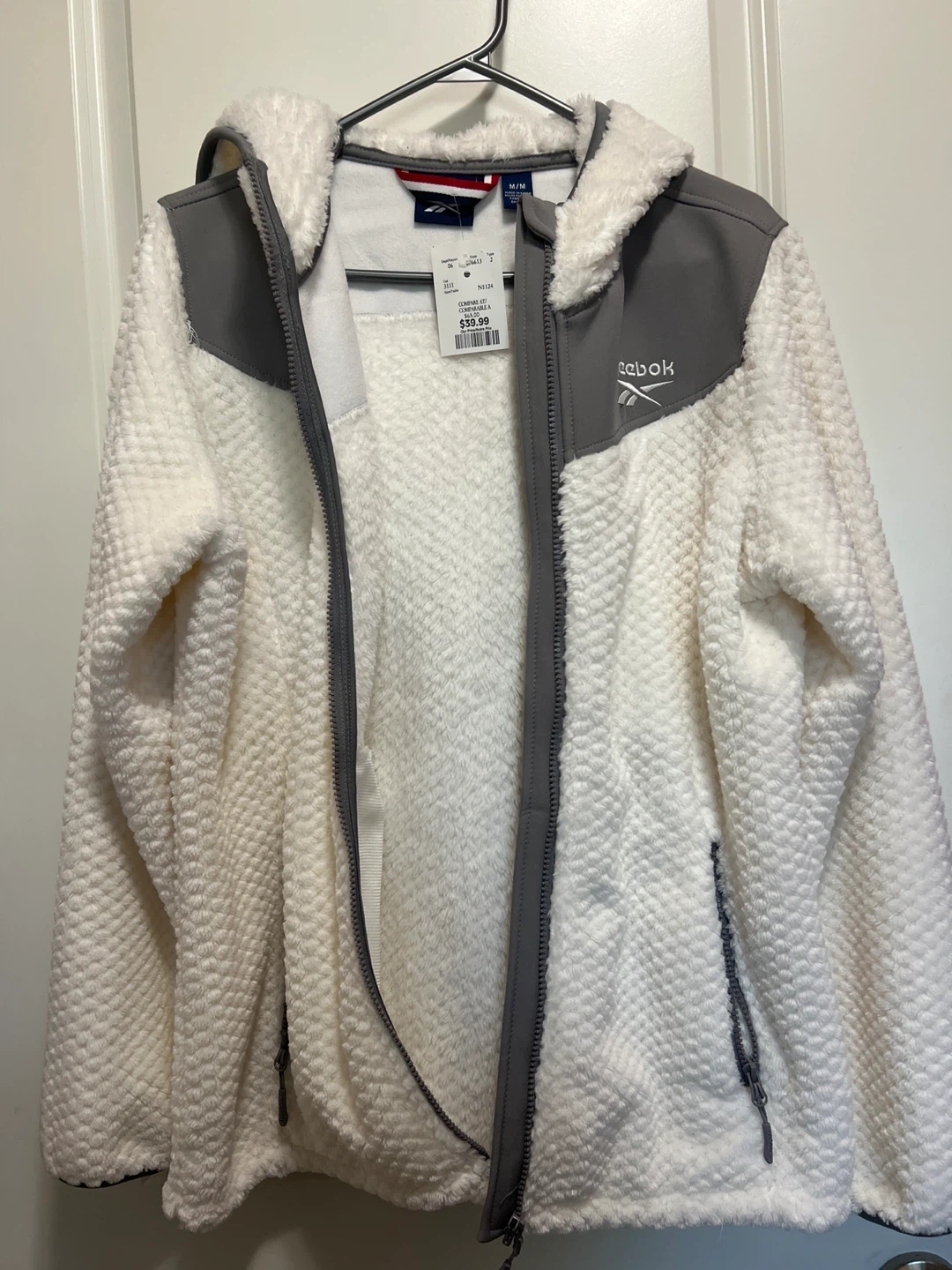 Cozy Reebok fleece jacket in size M/M! It's a stylish and comfortable piece, perfect for layering or wearing on its own. The fleece material is soft and warm, making it ideal for cooler weather. Originally bought for $39.99 plus tax. Brand new with tags still on. $30 OBO