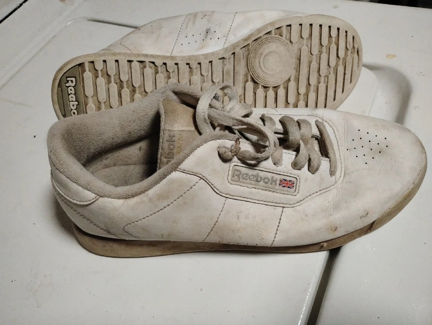 13Selling a pair of Reebok Freestyle sneakers in white. They are a size 8 US. Please see photos for condition!